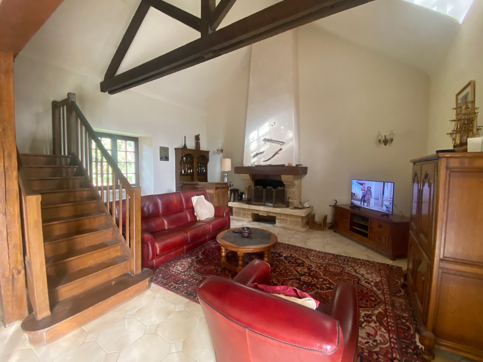 Au rez-de-chaussée : un espace de vie de 95 m2 composé d'une cuisine aménagée et équipée, d'un séjour avec baie vitrée et d'un salon doté d'une cheminée ouverte avec plafond cathédrale, un bureau de 30 m2, une salle de bains et wc. A l'étage : quatres chambres, une salle d'eau avec wc et une mezzanine.
