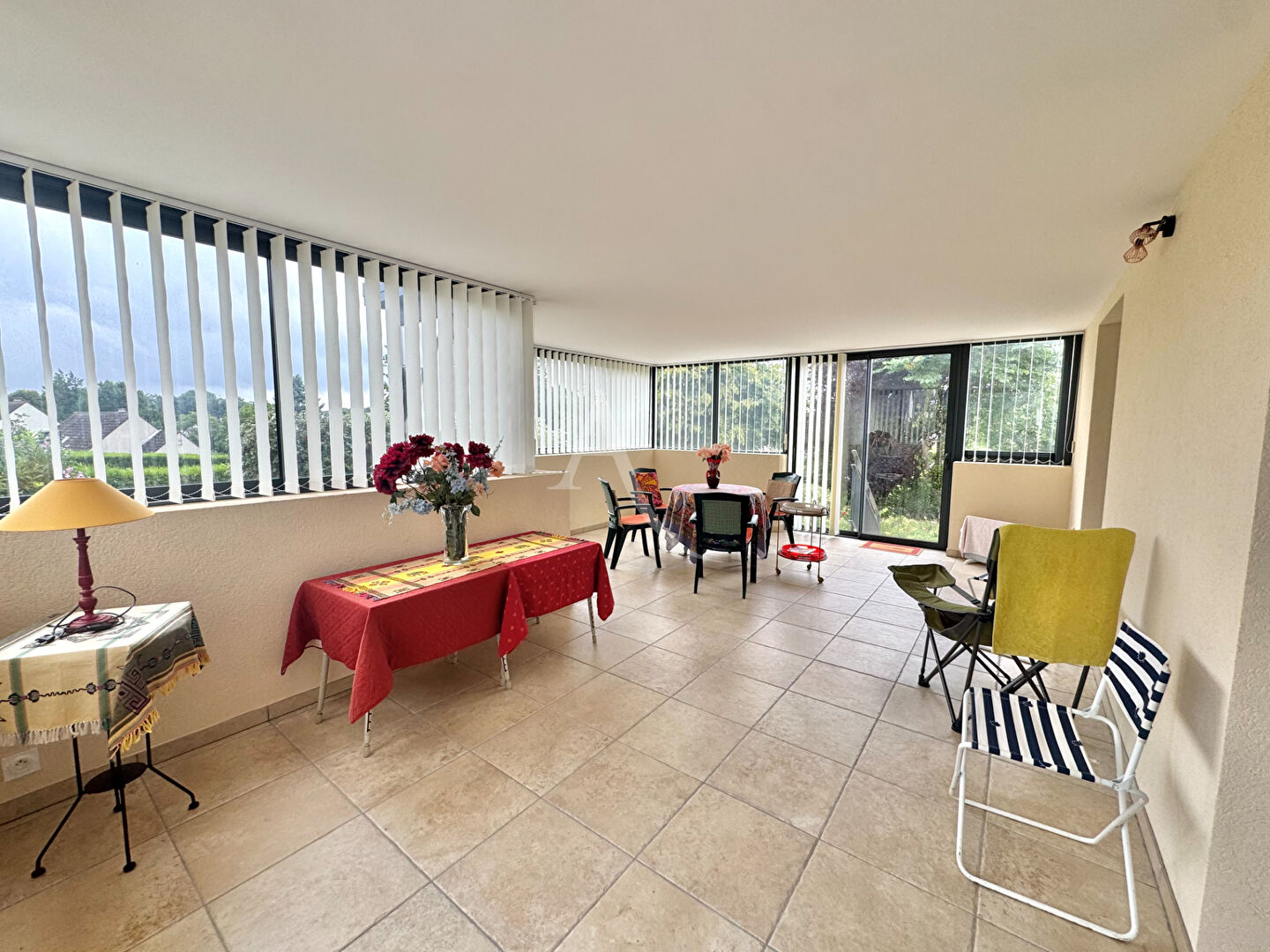 Elle offre une vie de plain-pied avec un vaste séjour/salon de 50m² prolongé par une véranda de 30m², une cuisine indépendante, une chambre, et une salle de douche avec WC.
