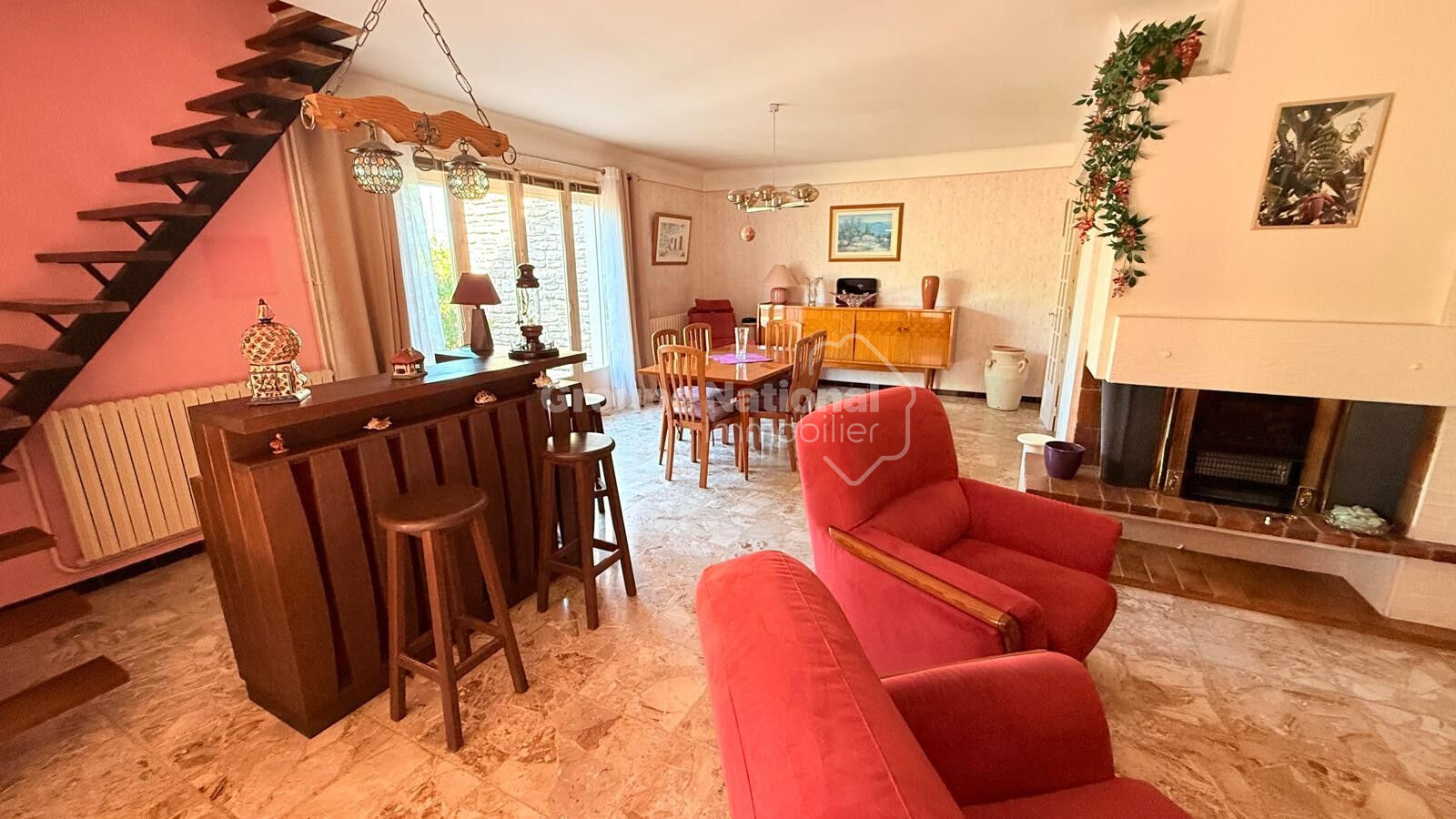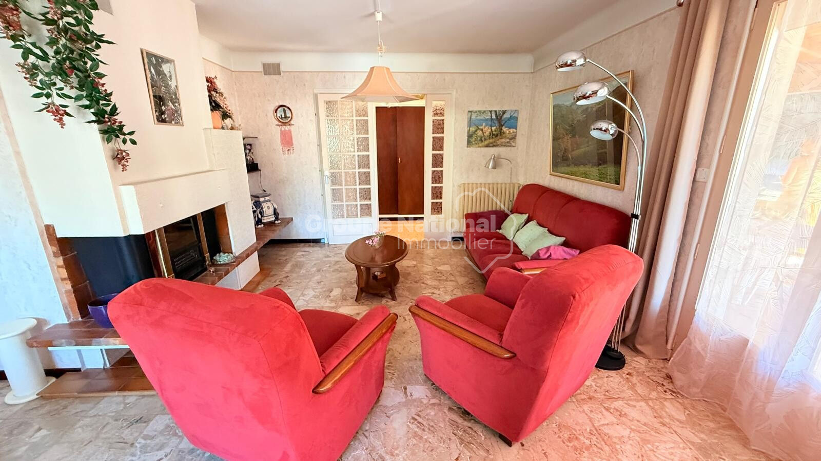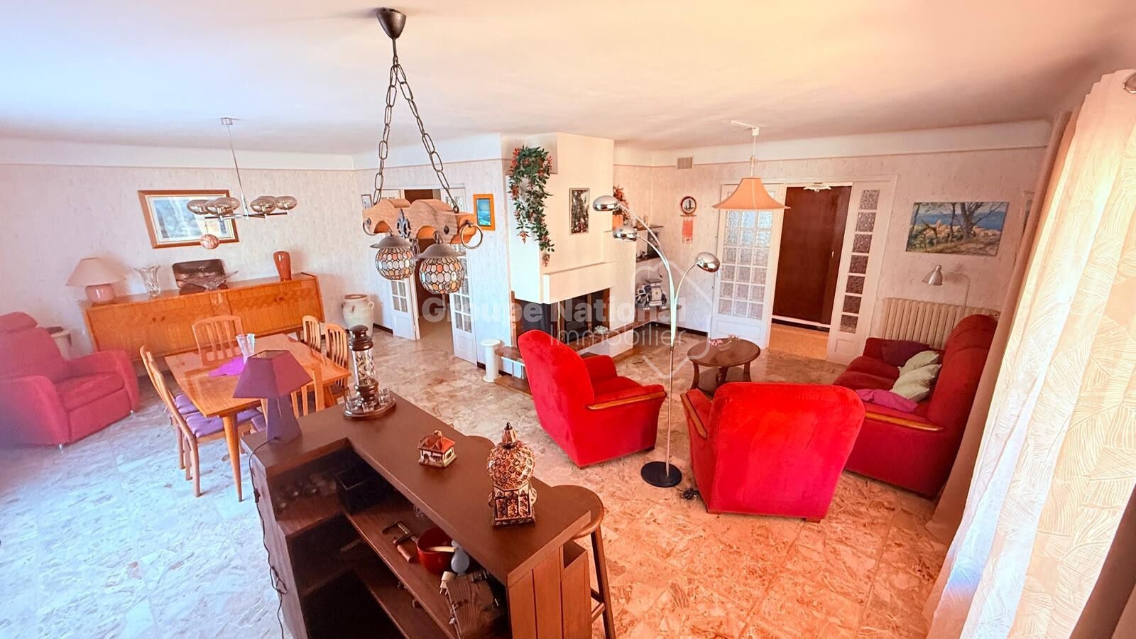 Située dans un quartier résidentiel paisible de Robion, cette maison de plain-pied des années 70 vous séduira par son environnement tranquille, son terrain arboré de près de 1000 m² et son fort potentiel d'aménagement. D'une surface d'environ 110 m², elle est composée :