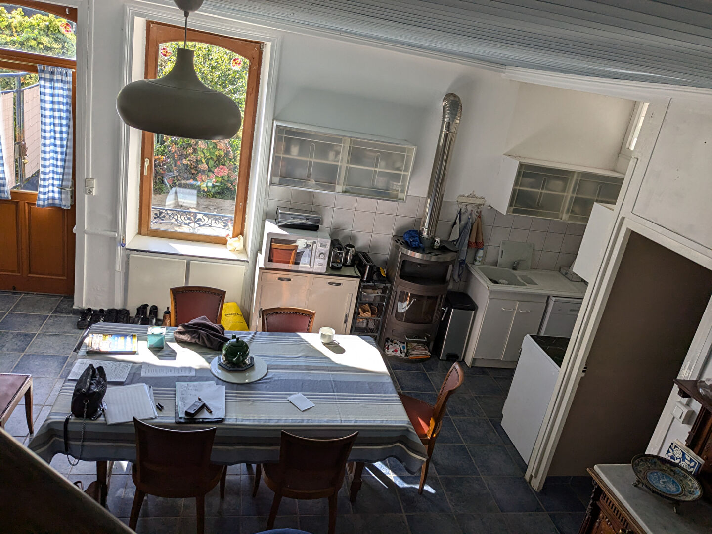 Beaucoup de charme pour cette maison de bourg à vendre sur un terrain de 1043 m2, comprenant au rdc, une pièce de vie avec un poêle à bois et un espace cuisine, un salon, une salle d'eau et w.c, au 1er étage, dégagement desservant 4 chambres, un bureau, une salle de bains et wc. En dépendance: un débarras, un bucher et un grand hangar. Tout à l'égout. A visiter.