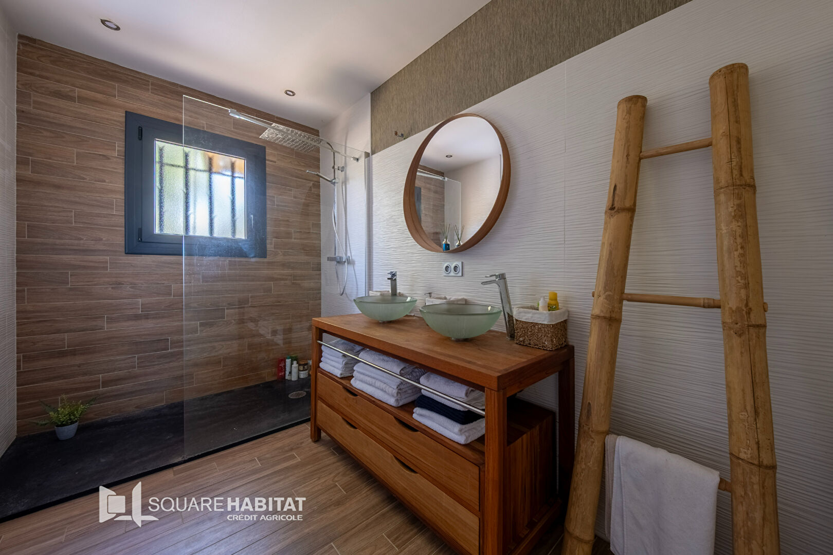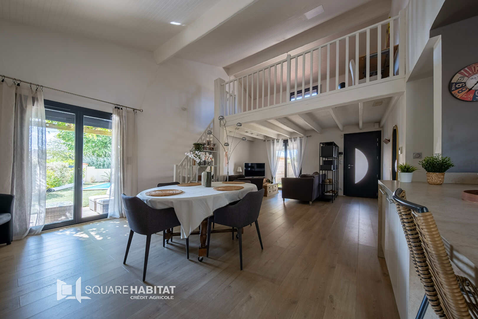 Les plus de la maison : la climatisation réversible, 13 panneaux solaires, des stores motorisés centralisés, un système d'alarme.