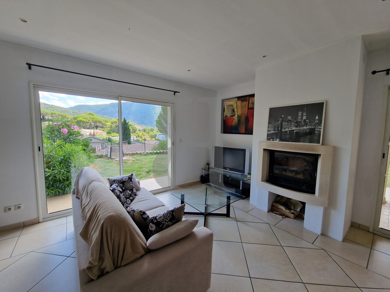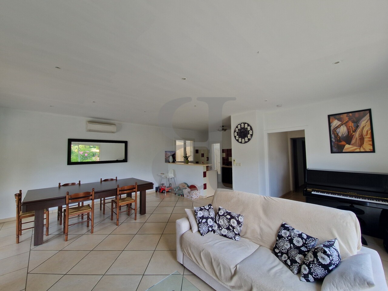 Séjour avec cheminée insert et climatisation réversible donnant sur jardin et terrasse sud 35 m²