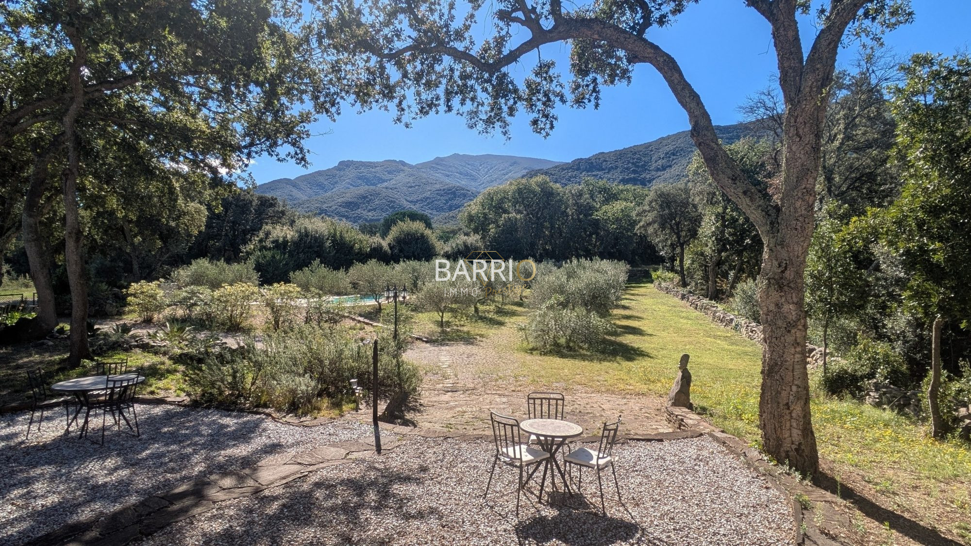 À l'extérieur, le terrain de plus de 9 000 m², arboré et soigneusement entretenu, offre un écrin de nature rare. Les oliviers confèrent une touche méditerranéenne, tandis qu'un ruisseau traversant la propriété installe une ambiance apaisante. Plusieurs terrasses et deux balcons vous invitent à profiter des vues dégagées et des belles journées ensoleillées. En point d'orgue : une superbe piscine au sel, enterrée et en forme libre, parfaitement intégrée au paysage, idéale pour savourer des instants de détente en toute intimité.