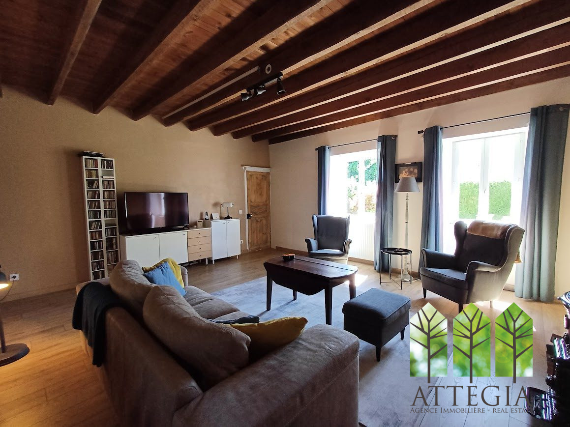 Référence annonce : N°1250Surface habitable : 180 m²Chambres : 3+Terrain : 4615 m² attenant, terrain platChauffage : central gaz de ville + poêle à boisAssainissement : conformeTaxe foncière : 516?/an