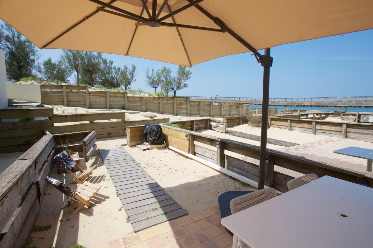 HOSSEGOR, à la plage Sud, dans une résidence en bord de plage, appartement en rez de plage, exposé Sud, offrant un séjour avec cuisine ouverte aménagée et équipée, une véranda avec porte sécurisée et connectée, placard, chambre occultée avec penderie, une salle d'eau avec WC, appartement équipée d'une climatisation. Agréable Terrasse et vue sur la plage.