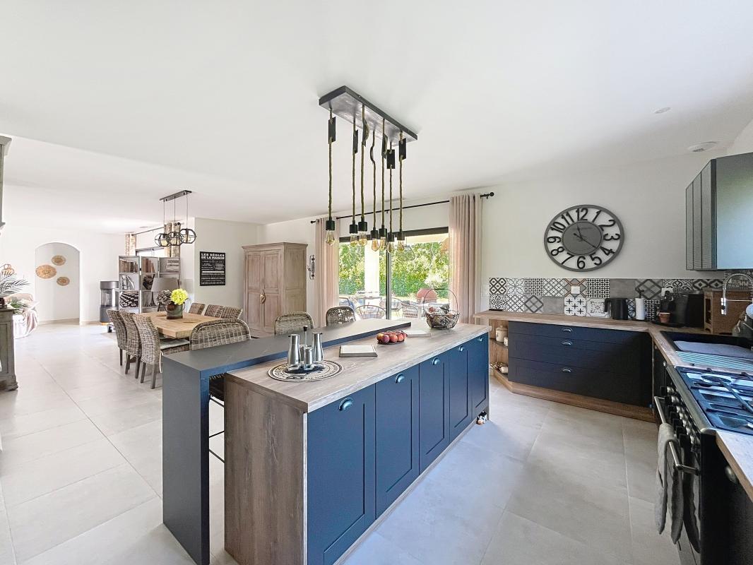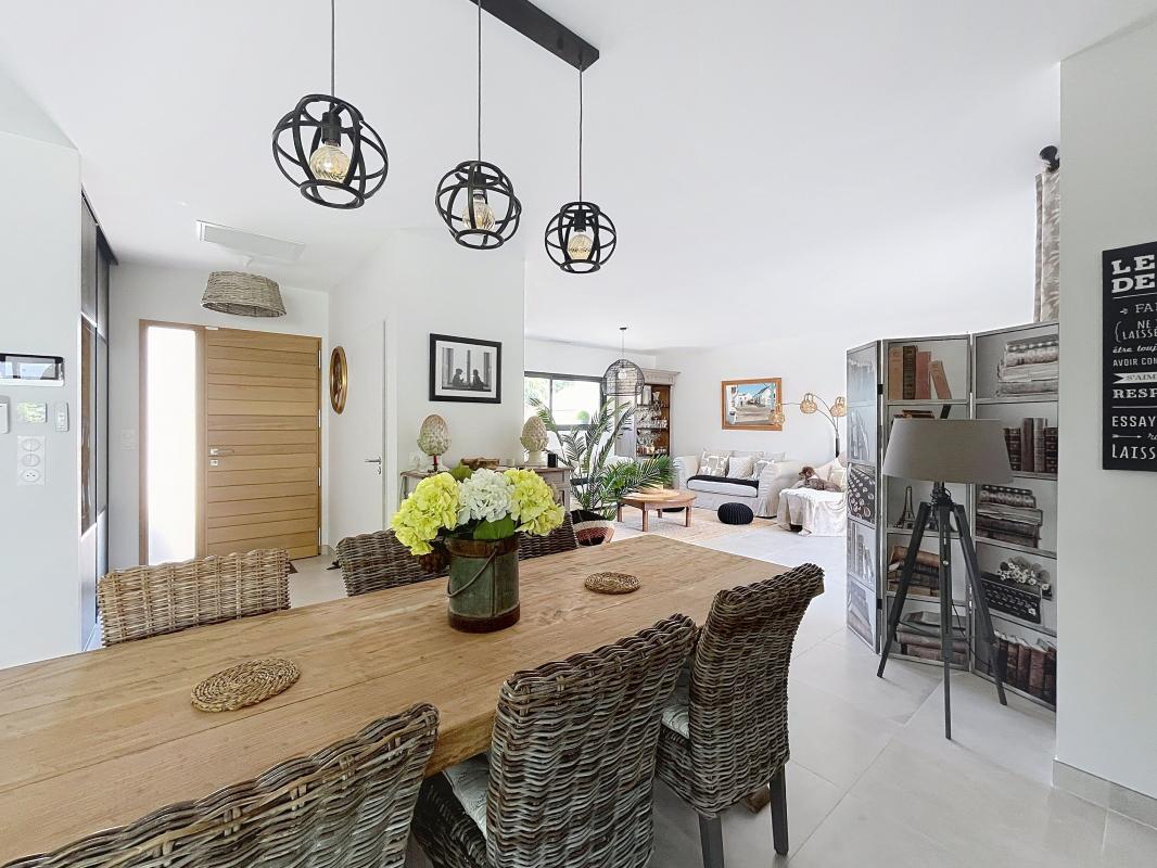 Avec ses 154 m² habitables, elle propose une pièce de vie spacieuse et lumineuse, un salon-séjour baigné de lumière avec une cuisine ouverte entièrement équipée, le tout donnant accès à une vaste terrasse de plus de 70 m² surplombant un couloir de nage en pierre de Bali, véritable havre de paix.