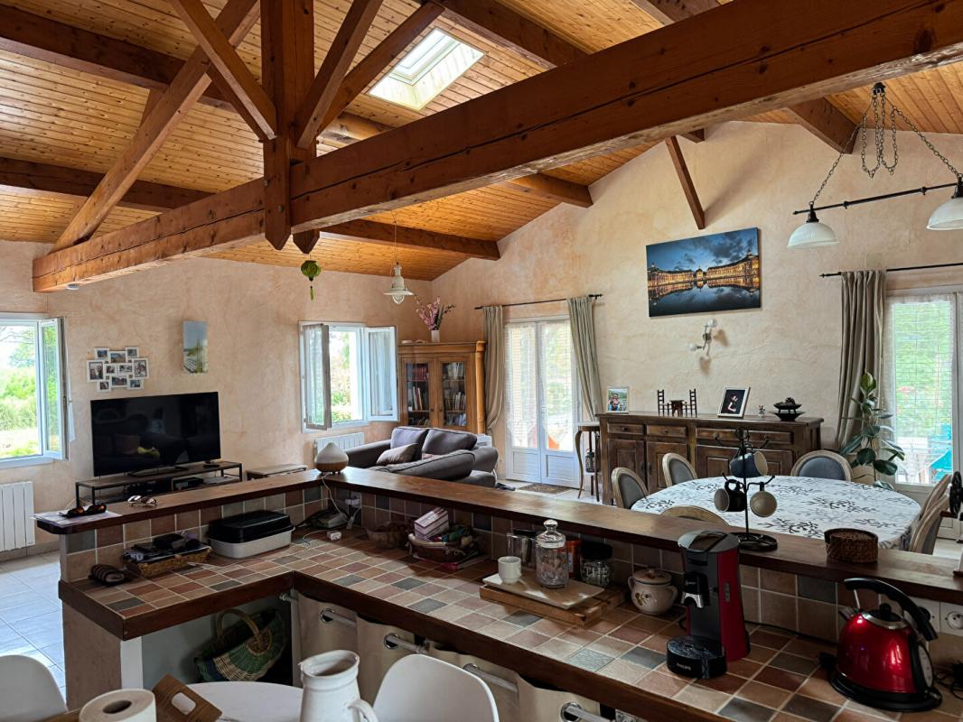 20 km de Saint Emilion, au coeur de l'Entre Deux Mers, Ravissante maison traditionnelle de 2002 de plain pied , 4 pièces et 138m² habitables sur un terrain clos magnifiquement arboré de plus de 7 000 m². La maison comprend une belle entrée avec placard et WC invités, une vaste pièce de vie triple exposition Est-Ouest-Sud avec cuisine ouverte aménagée et équipée et cheminée foyer fermé, un cellier avec accès extérieur, un dégagement, une lingerie une salle de douche, une salle de bains, trois chambres avec placards , WC. Grand garage non attenant de 54m², piscine hors sol structure bois avec local technique type chalet. Aucun vis à vis, aucun travaux à prévoir et au calme.