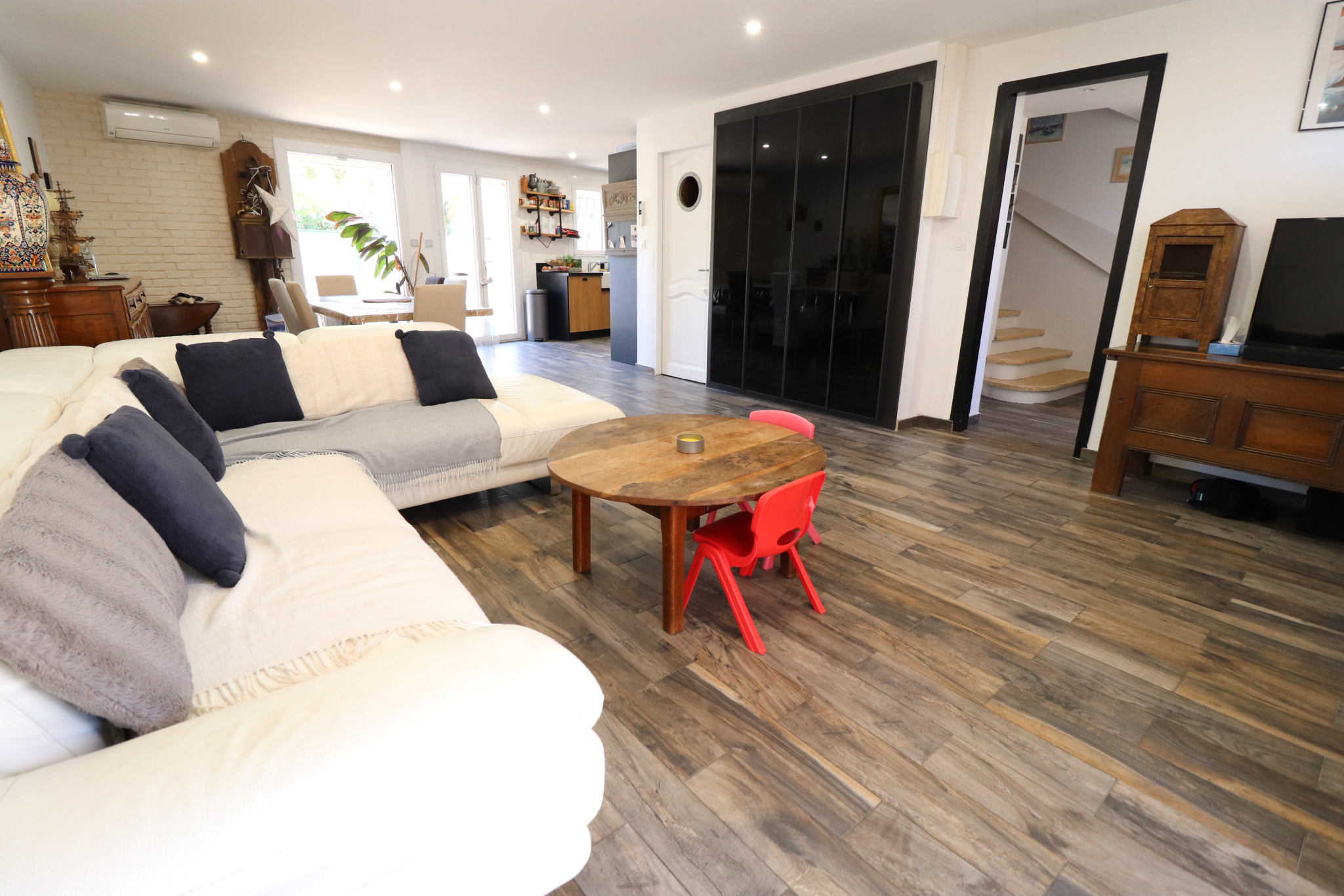 En son rez-de-jardin, un salon/cuisine traversant donnant l'accès à des terrasses.