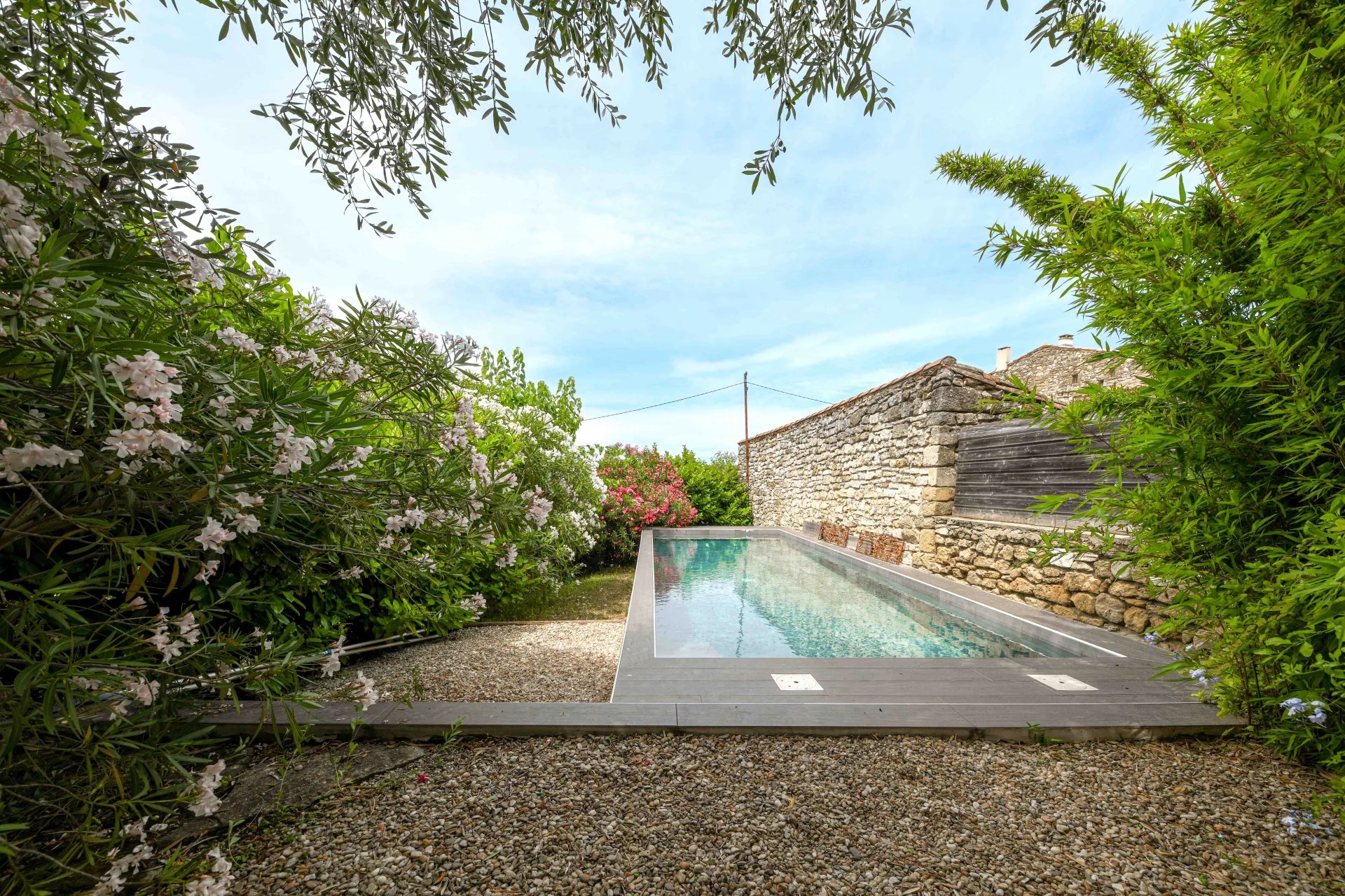 Jardin intime avec piscine 9 x 3.5m, garage de 49 m²