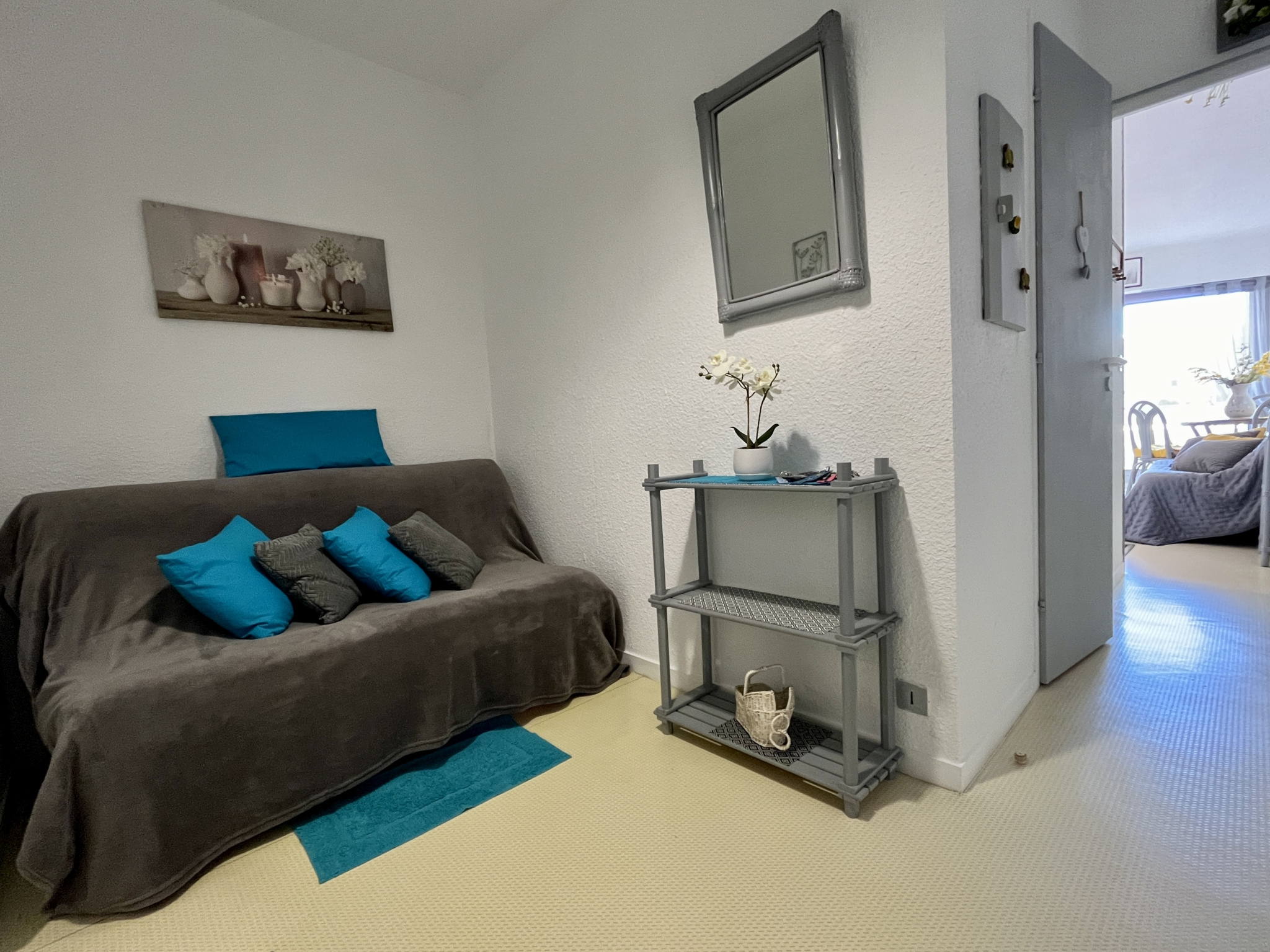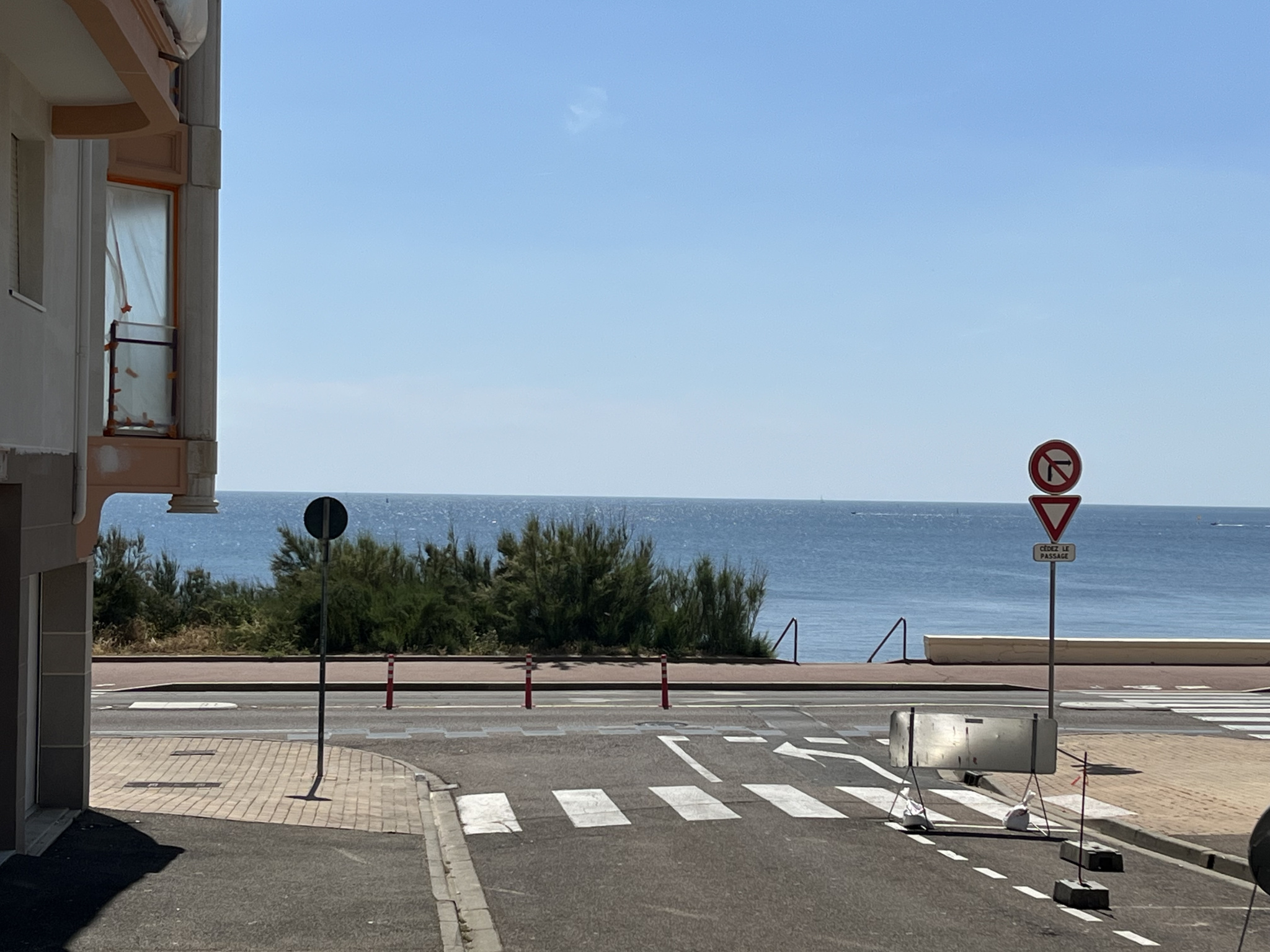 A deux pas de la plage de Tanchet et des commerces du quartier des Présidents, appartement avec vue latérale mer offrant entrée avec couchageS pour deux personnes, salle d'eau avec wc, séjour avec coin cuisine, balcon avec vue latéreale mer.