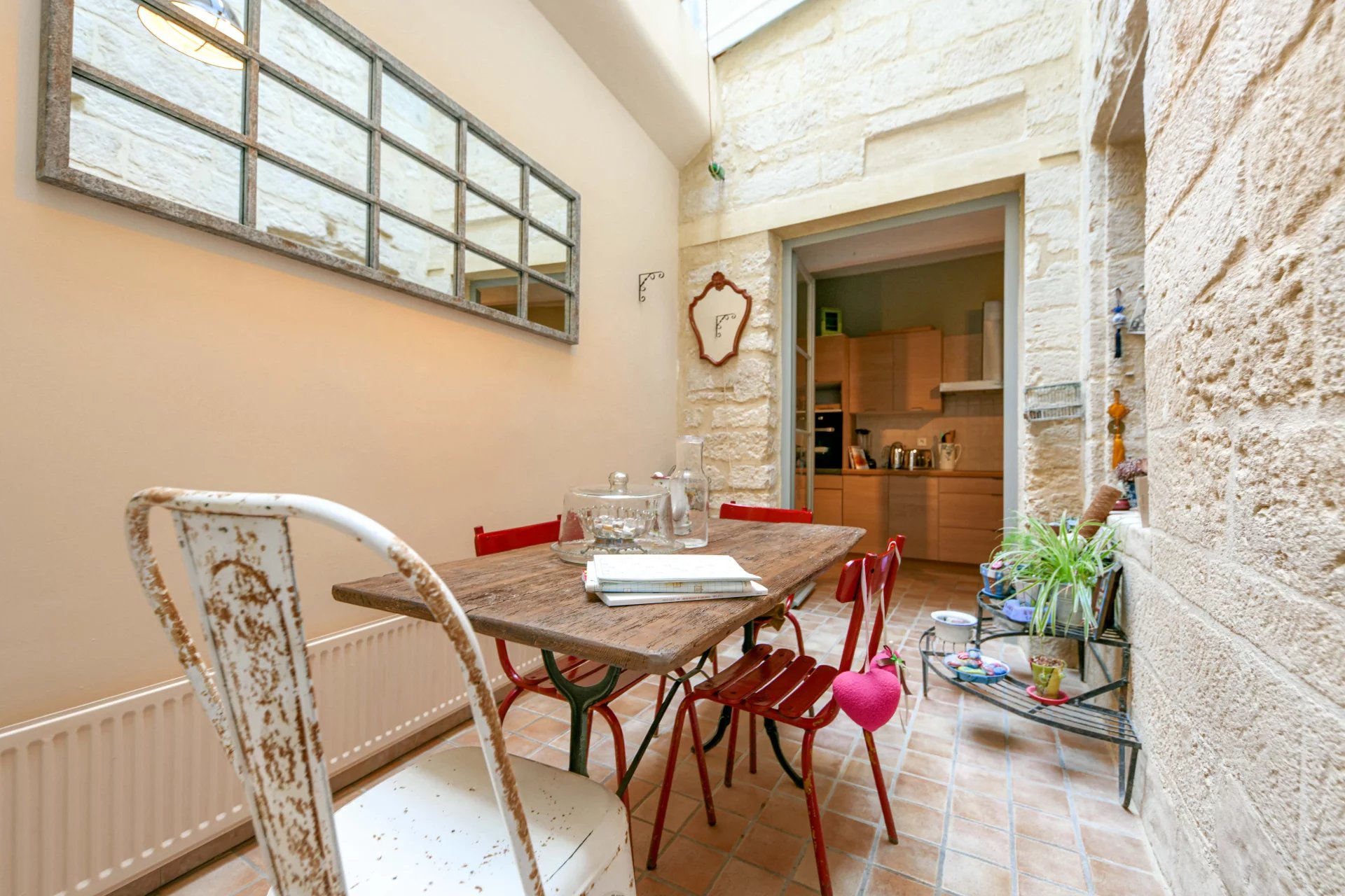 Cuisine équipée ouverte sur patio couvert et chauffée