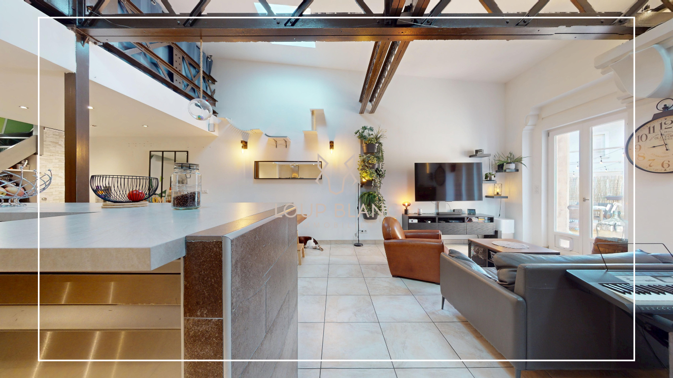 LOUP BLANC Immobilier Belfort, vous présente à la vente, en centre-ville de Belfort, un très beau loft de plus de 100m2 en duplex, avec accès à une terrasse privative de plus de 40m2.