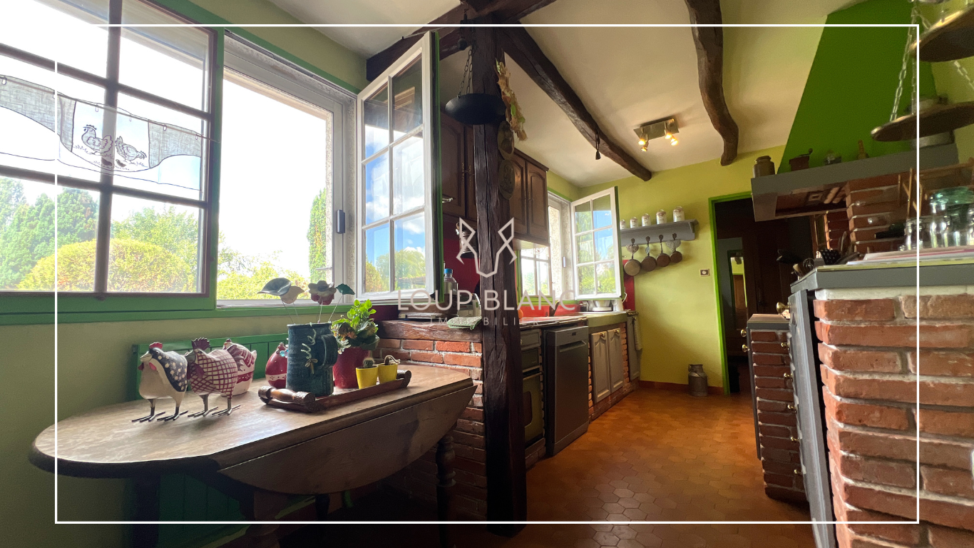 Une maison de plain-pied de 109 m2 sur 83 ares de terrain sans vis-à-vis, qui comprend une entrée, une cuisine indépendante, une grande pièce salon/salle à manger, trois chambres, une salle d'eau, un cagibi.
