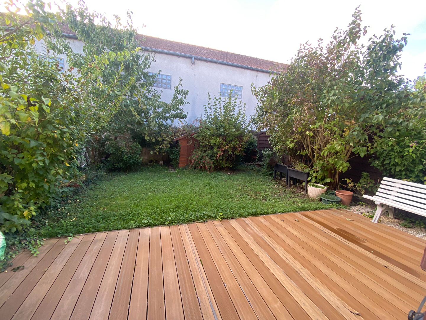 Un garage porte motorisée, le tout édifié sur un terrain de 135m² avec abri de jardin entièrement clos