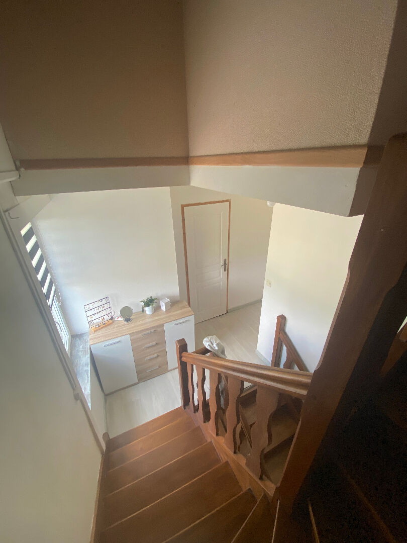À l'étage, un bel escalier en bois mène à une salle d'eau avec WC et deux chambres confortables. Le dernier niveau offre une grande chambre traversante, idéale comme suite parentale, espace de jeu ou bureau.