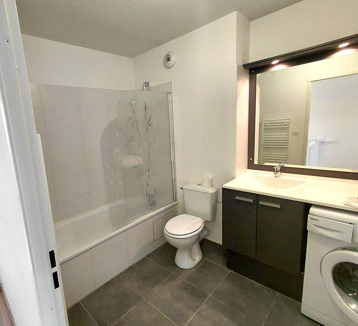 Une salle de bain avec WC