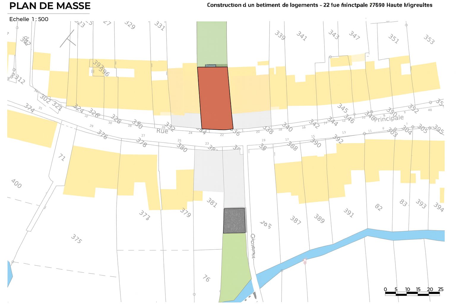 Le premier, d'environ 1 302 m² avec une façade de 11 mètres, bénéficie d'un emplacement central. Anciennement bâti, il a été libéré pour accueillir un nouveau projet. Un avant-projet de résidence R+2 de 6 logements a été envisagé et une étude de sol G1 est en cours. La commune soutient activement les projets de renouvellement urbain conformes au PLU.