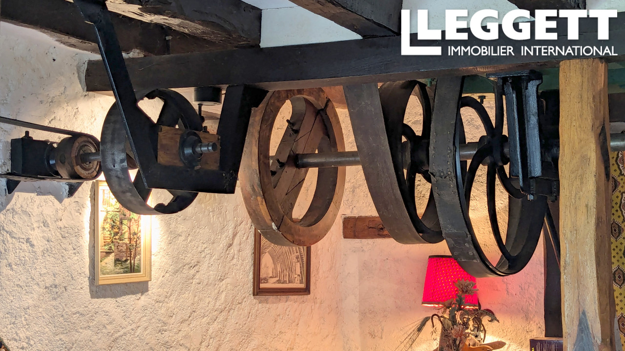 A36487WT36 - Cet étonnant moulin à eau a été construit en 1549 et a moulu de la farine jusqu'en 1955. Il figure sur l'ancienne carte de Cassini, ce qui signifie que ses droits d'eau ont été conférés par la Couronne avant la Révolution française. Le moulin n'a pas de voisins proches et on y accède par un long chemin idyllique, sur lequel la célèbre romancière George Sand aimait se promener, et qui fait également partie du chemin de Saint-Jacques-de-Compostelle.