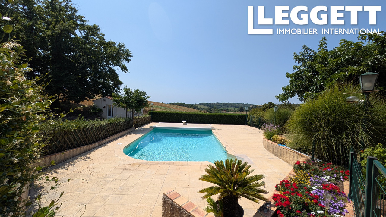 A38724SRS47 - Villa construit en 1984 avec magnifique vue sur la campagne vallonnée, cette maison est situé au milieu d'un grand parc accèder par son long allée privée et portail électrique. Il y a une grande terrasse qui donne sur la piscine et la vue derrière, située à Virazeil dans le Lot et Garonne près de Marmande.