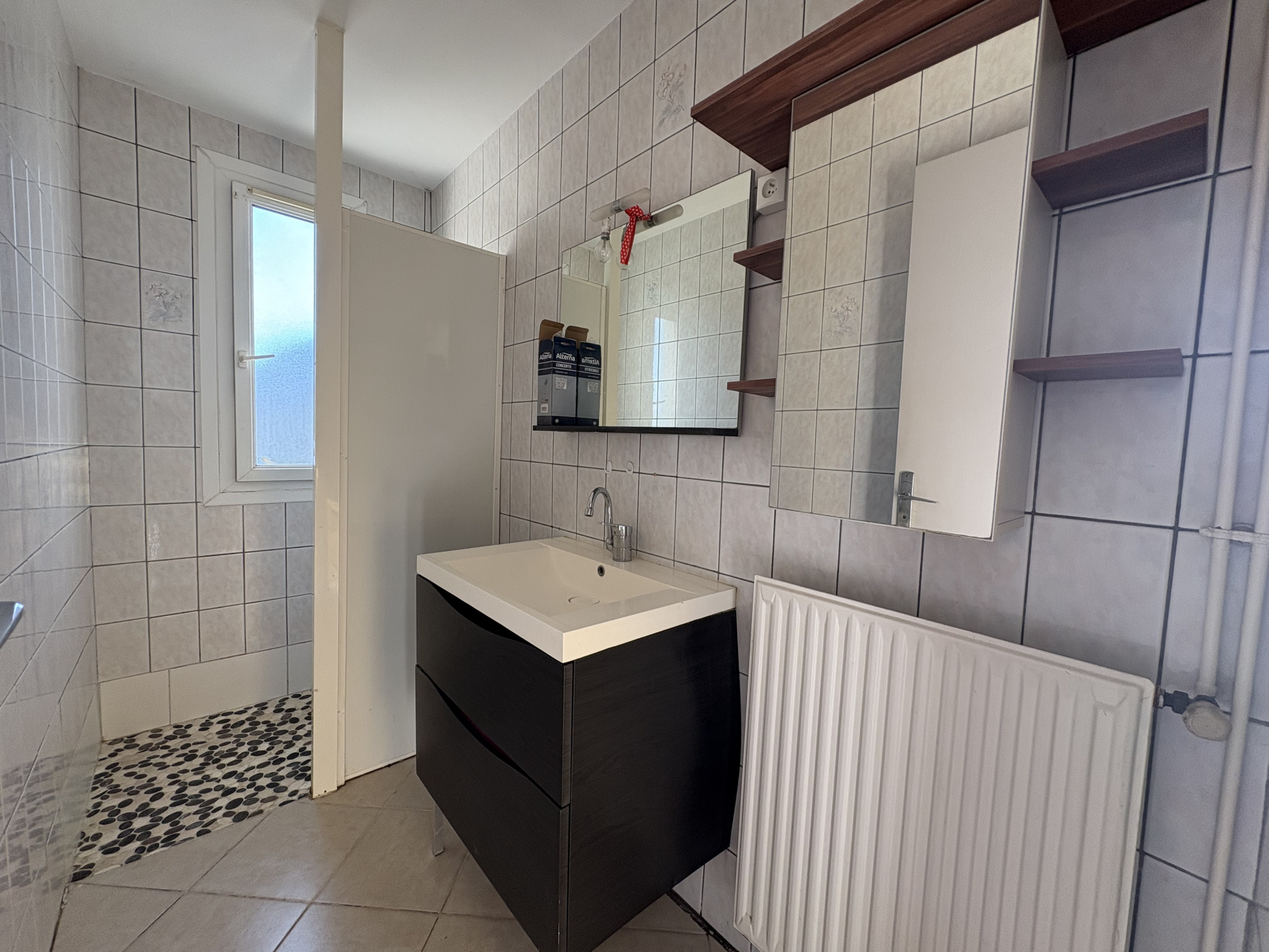 MAISON DE TYPE 4 COMPRENANT : AU REZ DE CHAUSSEE: UNE ENTREE, UN WC, UNE CUISINE, UN SALON/SEJOUR DE 19 M2 : AU 1ER ETAGE : DEUX CHAMBRES, UN BUREAU, UNE SALLE D'EAU, UNE TERRASSE. CHAUDIERE GAZ DE VILLE NEUVE - DOUBLE VITRAGE.