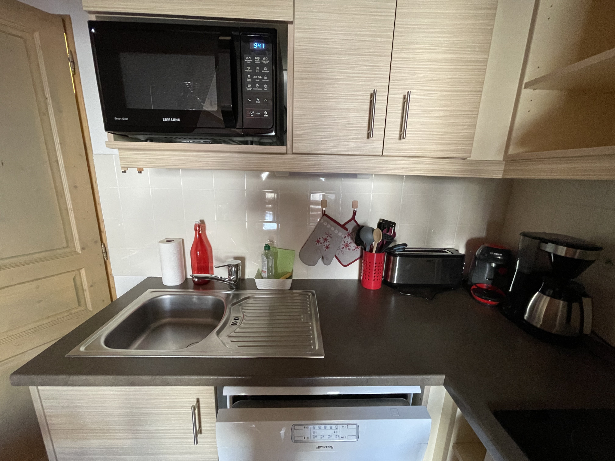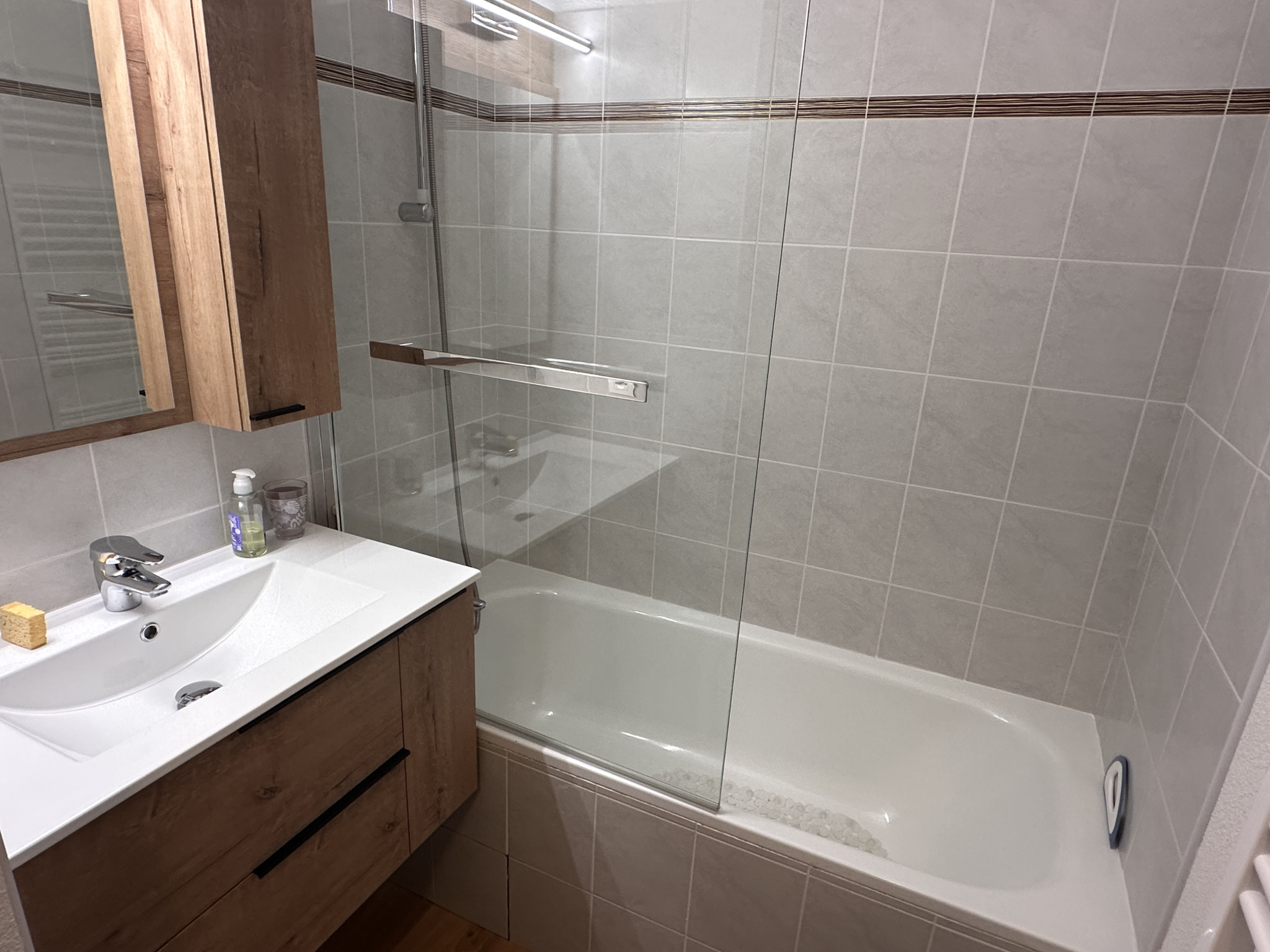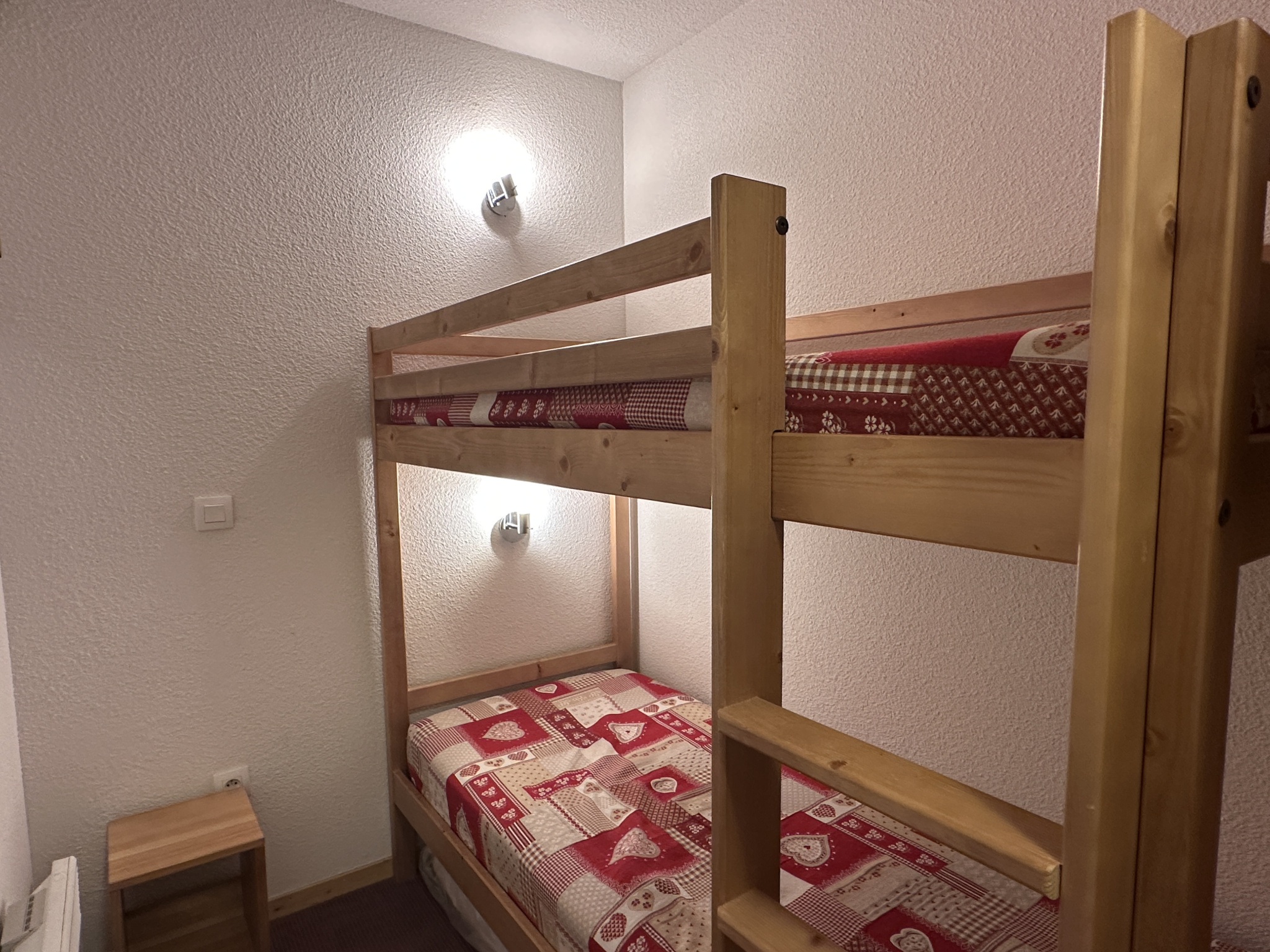 L'appartement comprend une entrée avec rangement, une salle de bains, un WC séparé, une grande alcôve et un séjour avec cuisine donnant sur le balcon. L'appartement ' Ambiance Chalet' se situe au dernier étage avec une partie en soupente donnant un beau volume à la pièce principale. La superficie au sol de l'appartement est de 34,48 m2.