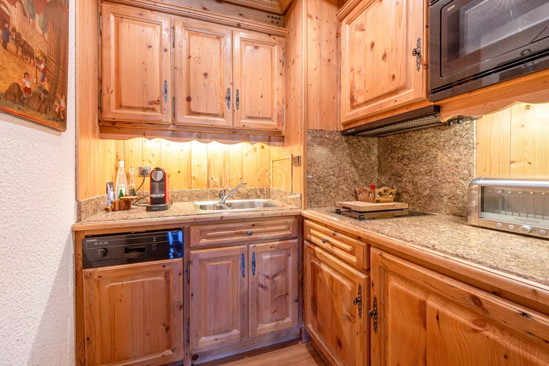 Découvrez cet appartement d’environ 52 m², décoré dans un style montagnard avec des finitions en bois offrant une ambiance chaleureuse.