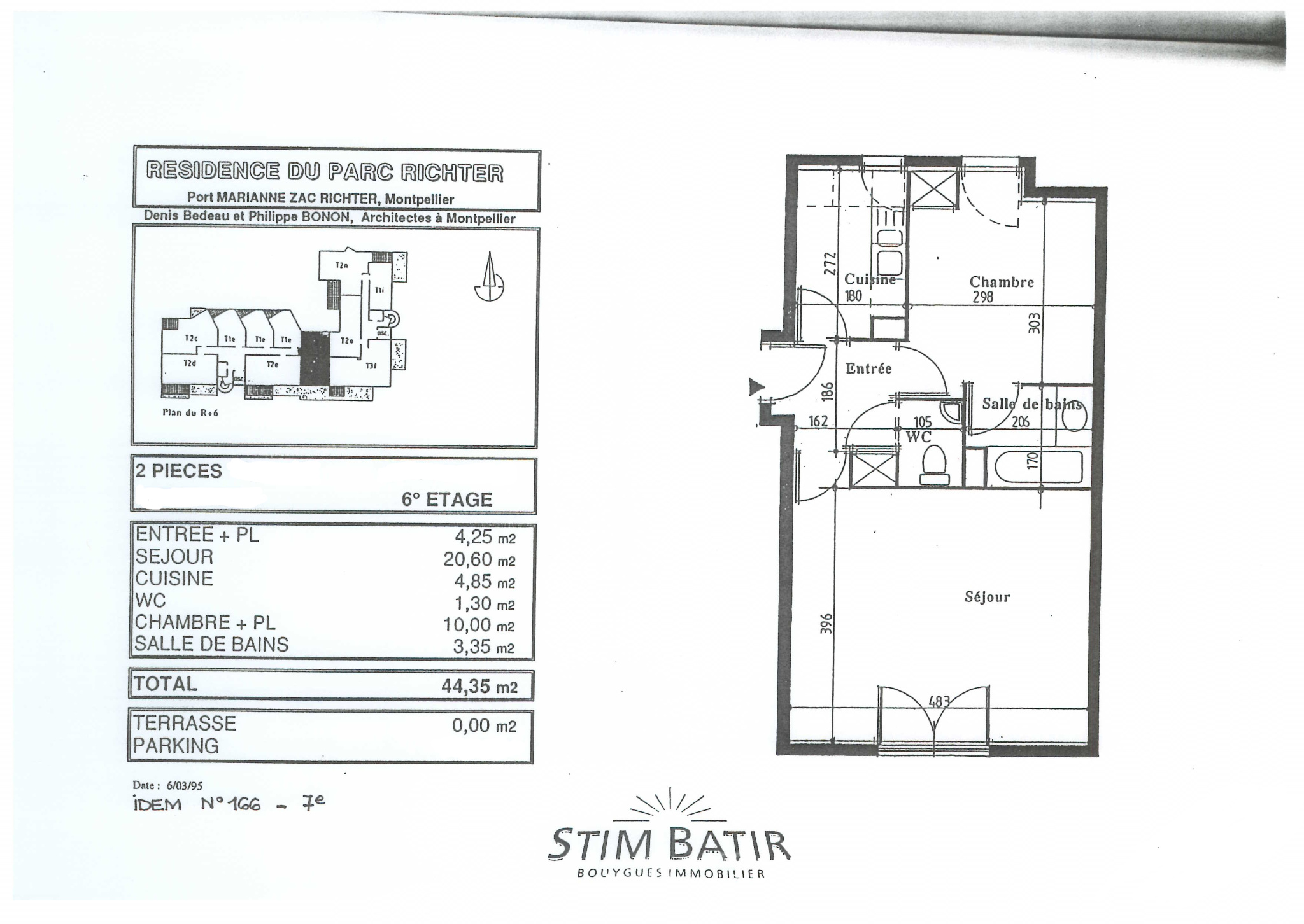 À vendre : appartement 2 pièces de 44,35m2 avec parking dans le quartier Richter à Montpellier. (vendu avec un locataire dont le bail se termine en juin 2027)