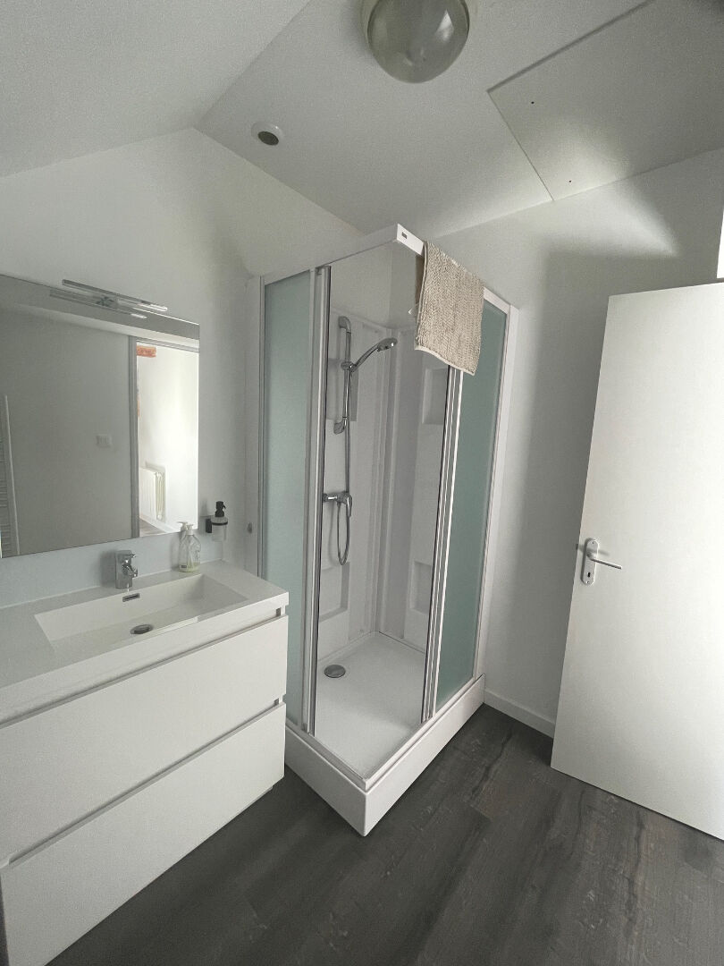 * Au premier étage : Appartement T2 avec pièce de vie lumineuse, cuisine aménagée et équipée (four, plaque, hotte), WC séparé, chambre avec salle d'eau attenante. Loué