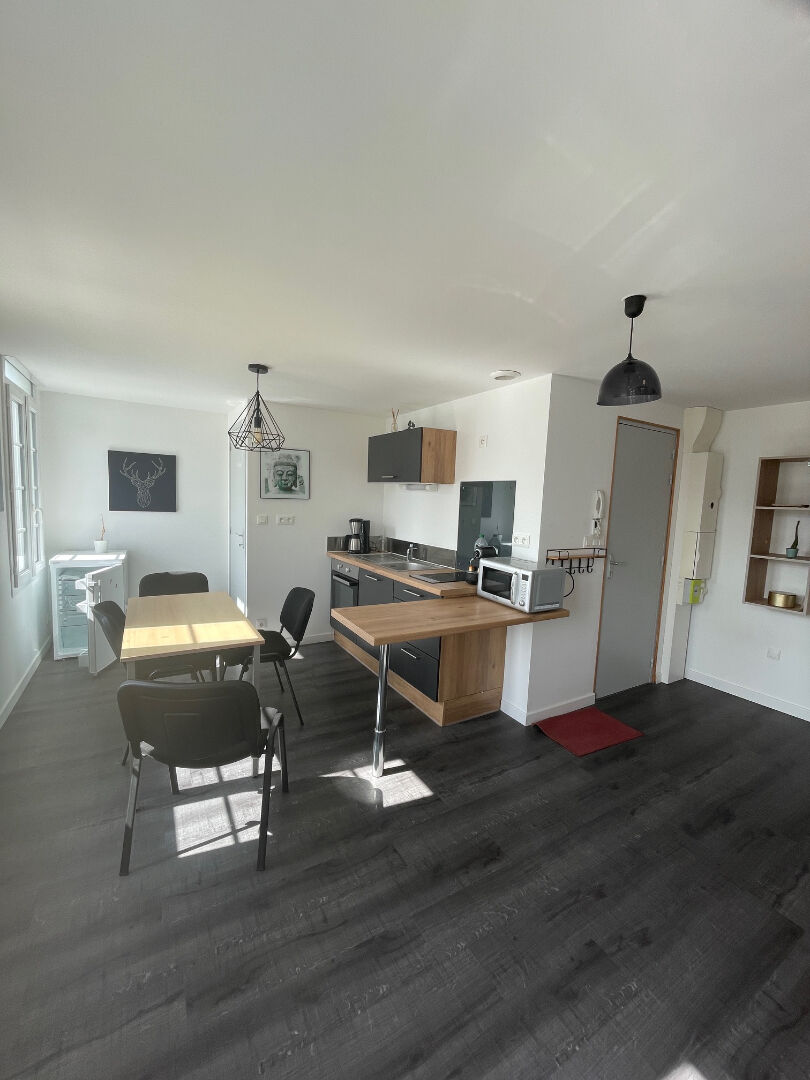 * Le premier, un appartement T1 en duplex avec espace de vie et cuisine aménagée et équipée, chambre en mezzanine avec salle d'eau et WC. Loué.
