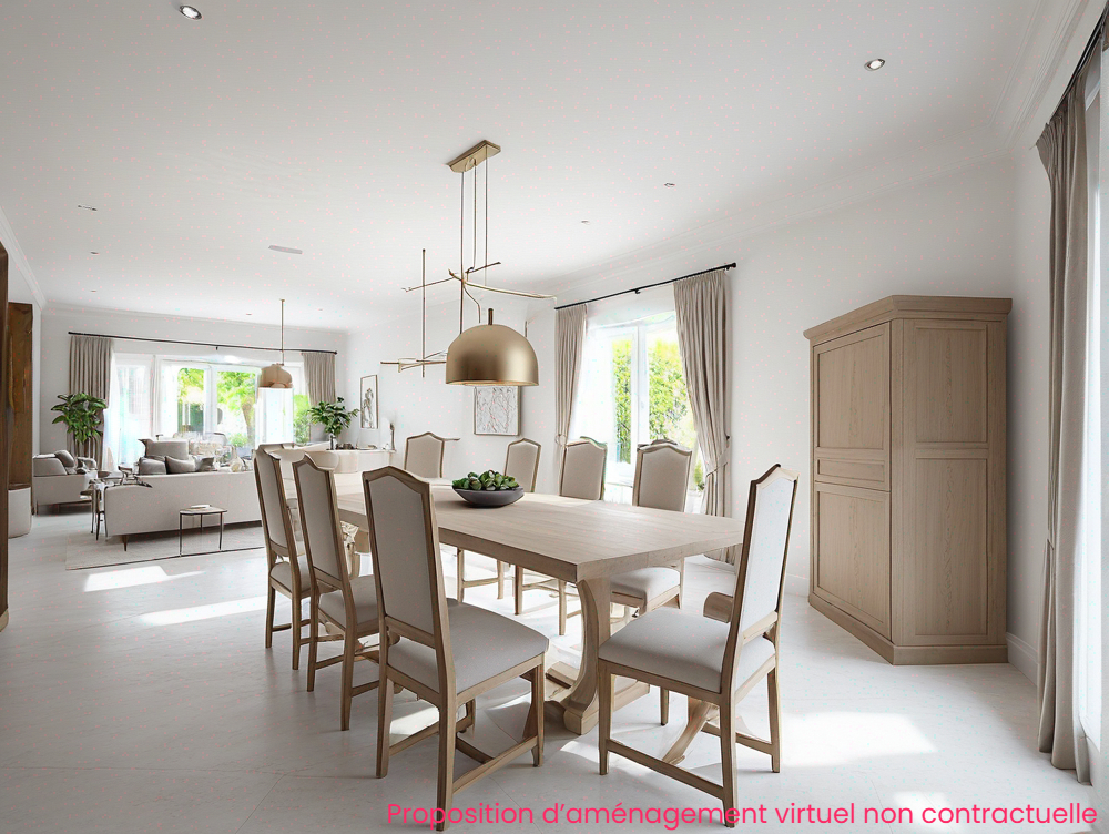 Au rez-de-chaussée, elle se compose d'une spacieuse entrée, d'un vaste salon-séjour lumineux offrant un accès direct à la superbe terrasse avec pergola, d'une grande cuisine aménagée et équipée (disposant également d'un accès terrasse), d'un cellier, d'un WC indépendant et d'une première grande chambre avec salle d'eau privative.