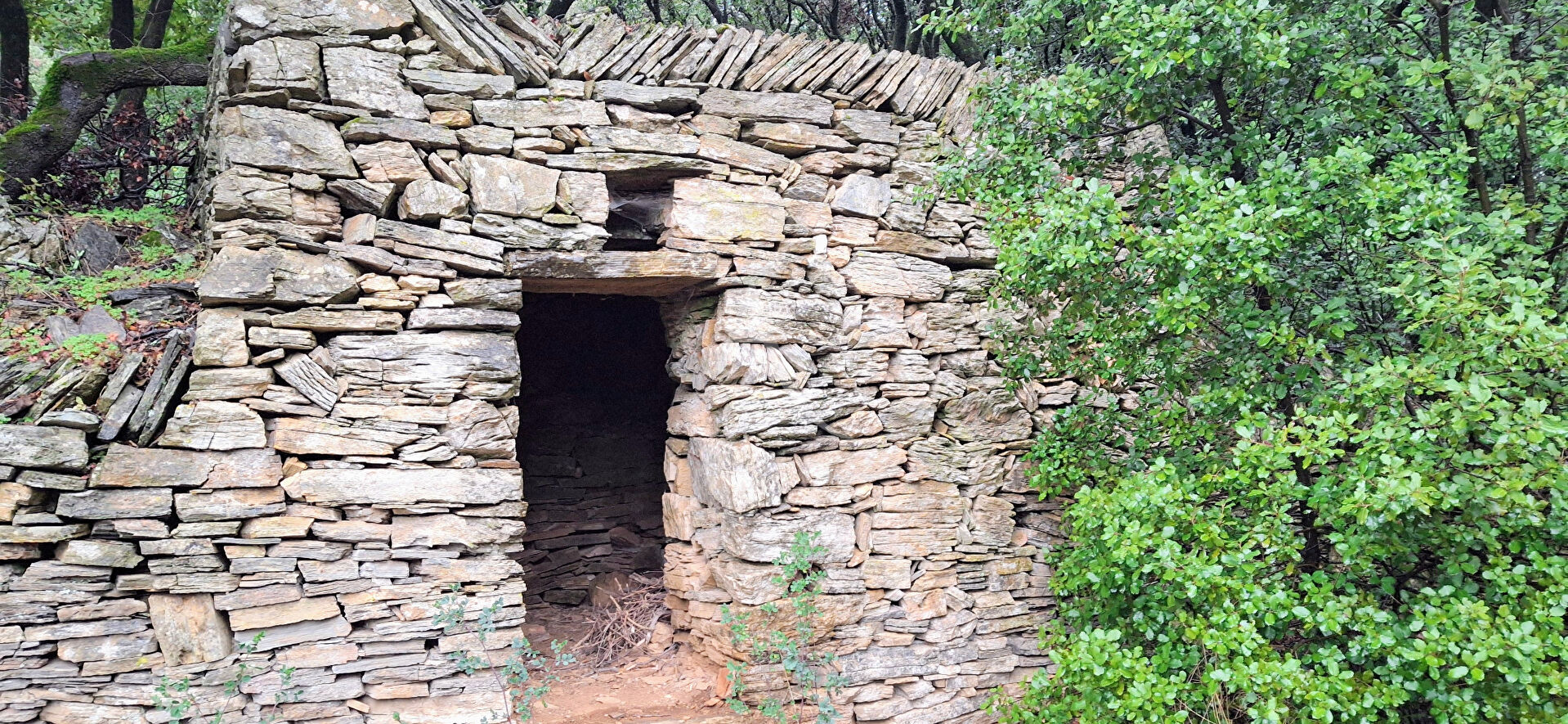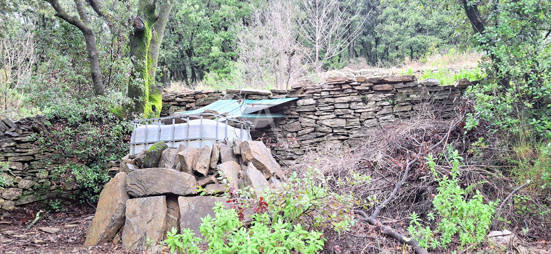 Terrain boisé avec chênes, châtaigniers, quelques oliviers et 4 capitelles.