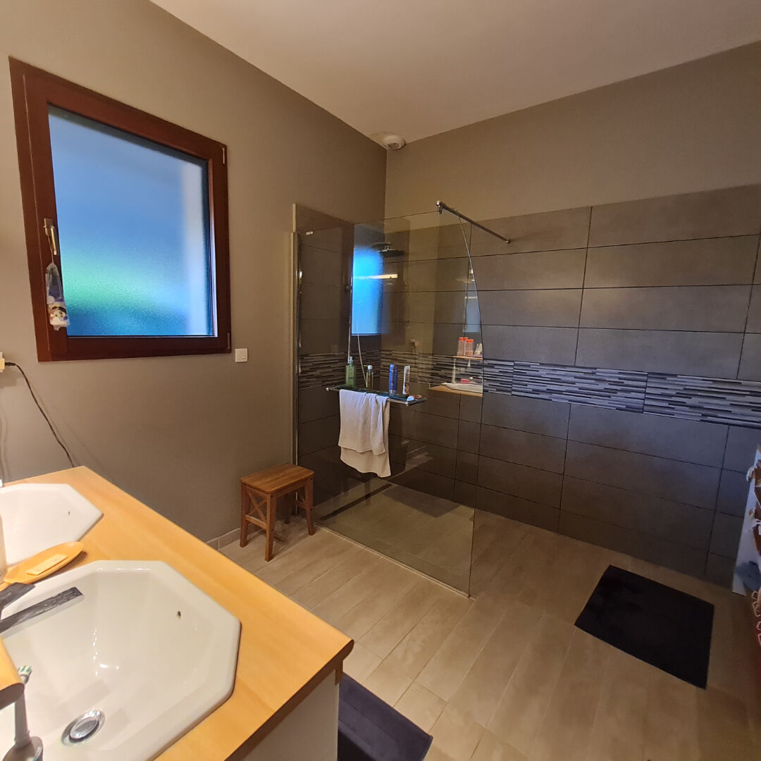 Au rez-de-chaussée, vous découvrirez une cuisine équipée (et une arrière cuisine) ouverte sur un salon séjour lumineux de 65m² avec cheminée, une agréable véranda donnant la terrasse et le jardin, puis une suite parentale avec sa salle d'eau attenante avec douche à l'italienne.