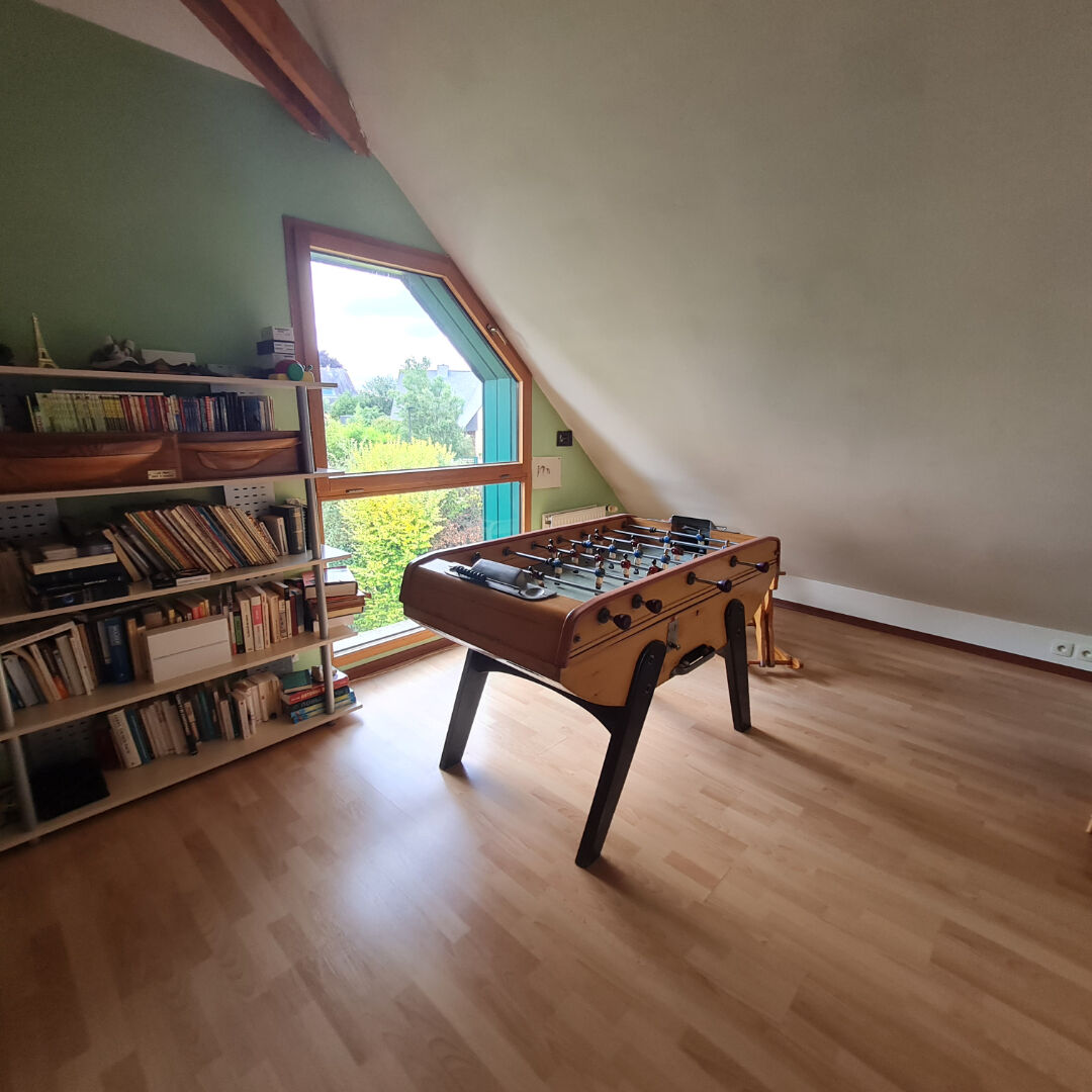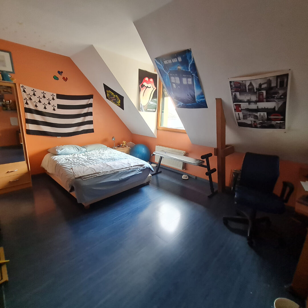 À l'étage, vous retrouverez une mezzanine desservant quatre grandes chambres, et une salle de bains. Vous retrouverez également une cinquième chambre (37m² au sol) avec accès par le couloir ou par un escalier privé passant par la buanderie.
