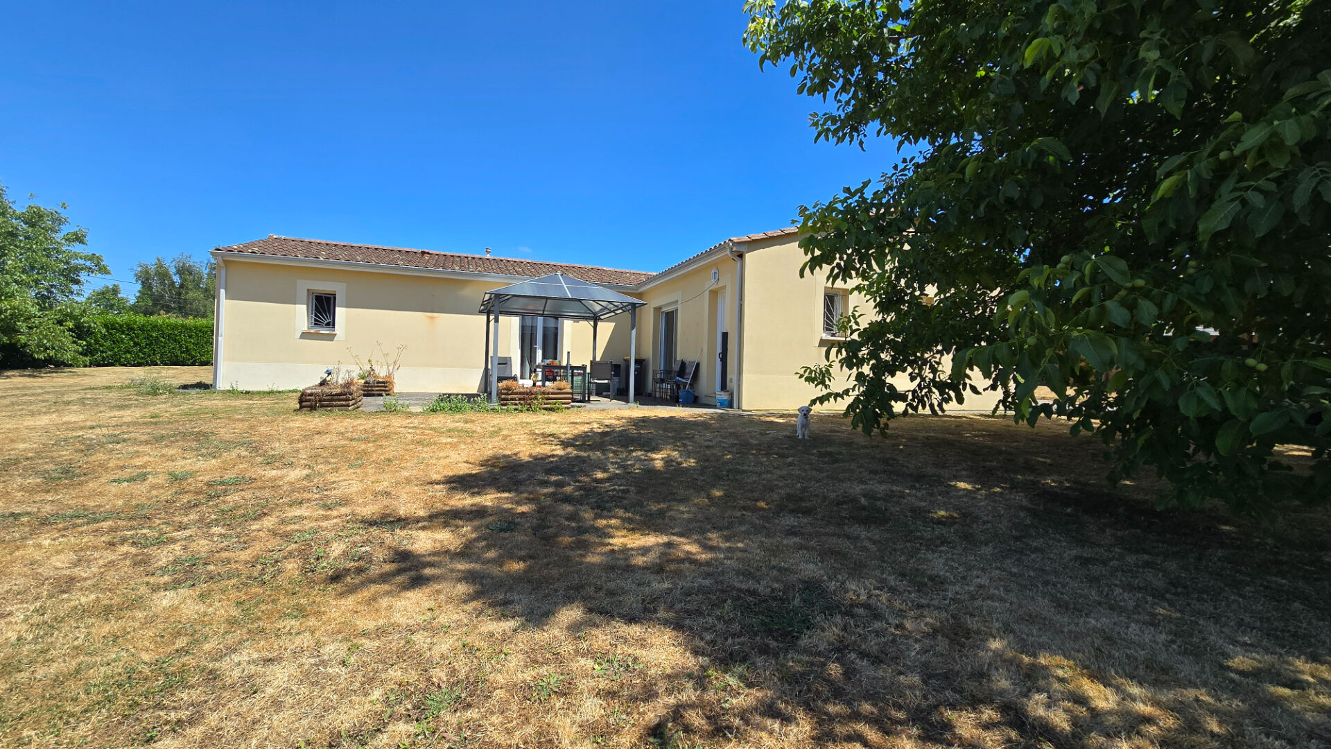 ERA immobilier Agence Argu's vous présente cette maison récente de plain-pied construite en 2013, offrant une surface habitable de 140 m². Elle comprend 3 chambres dont une avec sa salle d'eau et WC ; Une salle de bains avec WC. L'espace de vie bénéficie d'un grand séjour lumineux grâce aux expositions est et ouest. Une belle cuisine américaine aménagée, et la maison est équipée d'un chauffage bois(poêle très performant) et électrique. Le terrain s'étend sur 3 481 m², offrant un cadre calme et agréable. Très bon état général, sans travaux à prévoir. Située à Voulême, à proximité des commodités locales et des transports, cette maison représente un atout pour les familles recherchant un cadre paisible tout en étant accessible.