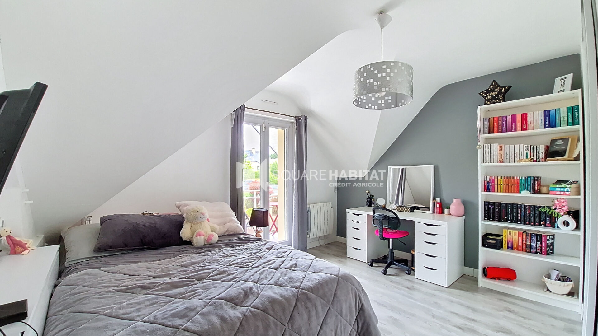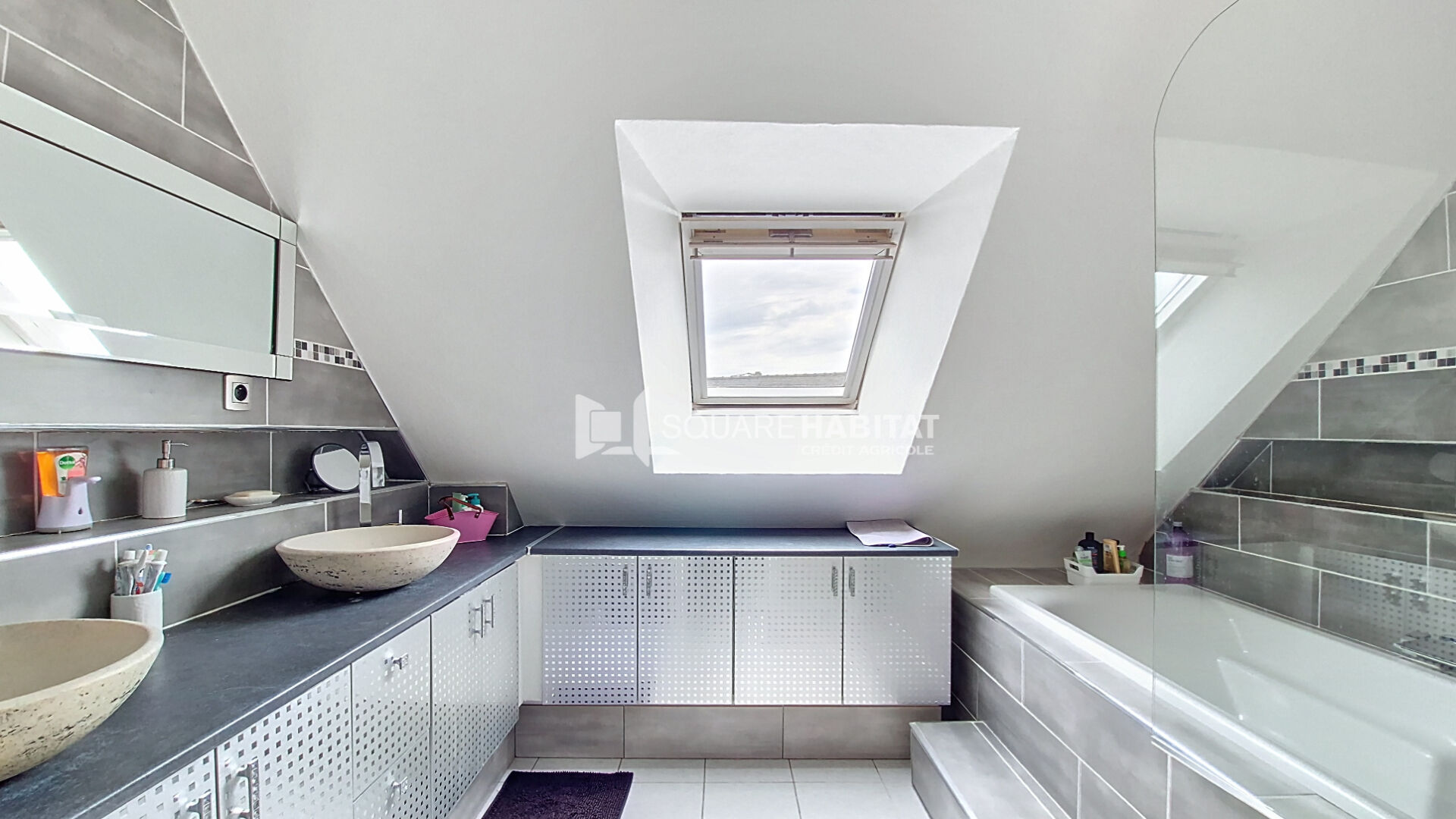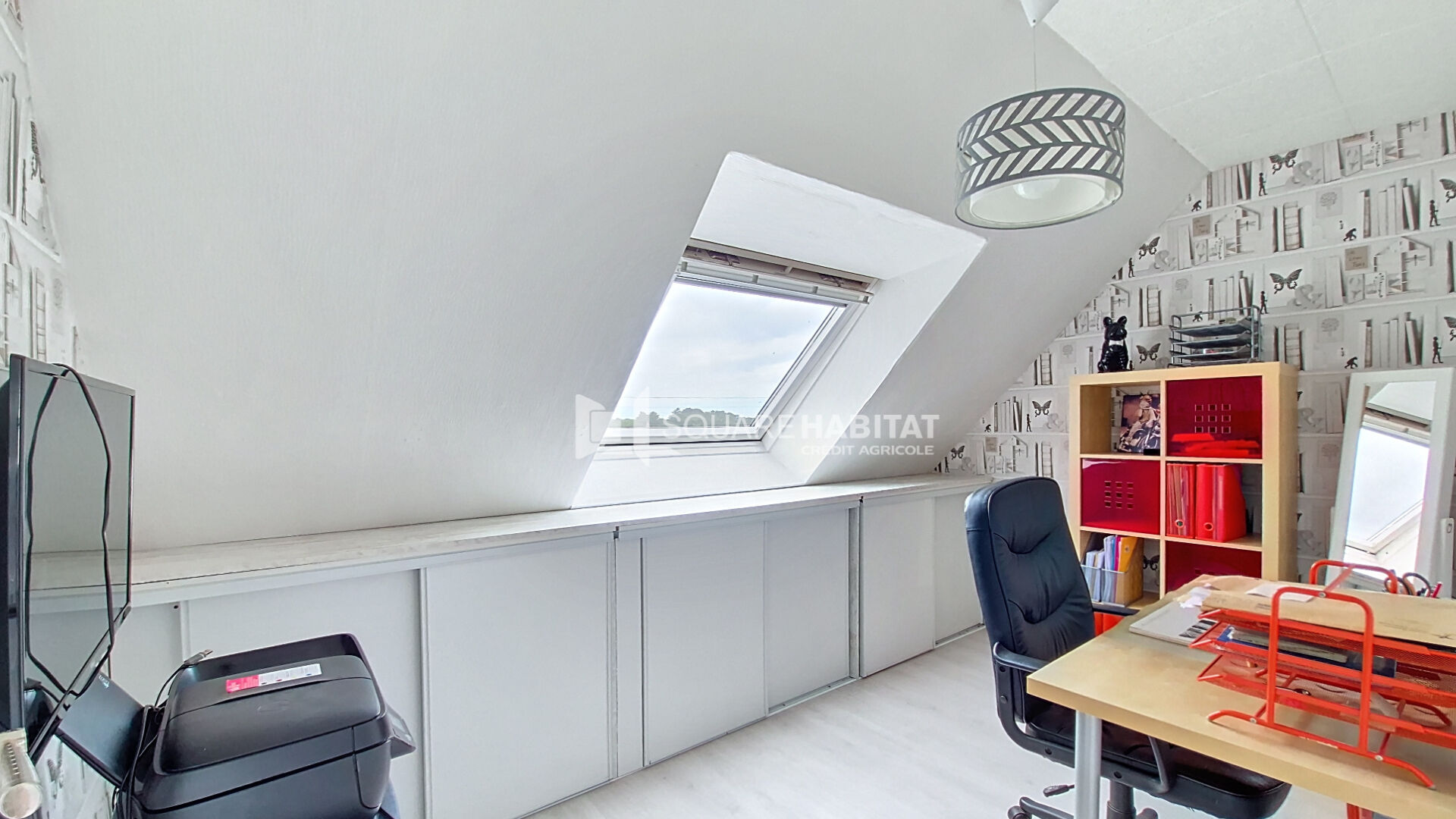 Une grande mezzanine qui pourrait être aisément transformé en chambre supplémentaire au besoin distribue dors et déjà 3 chambres avec placard, un bureau qui pourrait tout autant être une 5eme chambres, une salle de bains deux vasques et un WC indépendant.