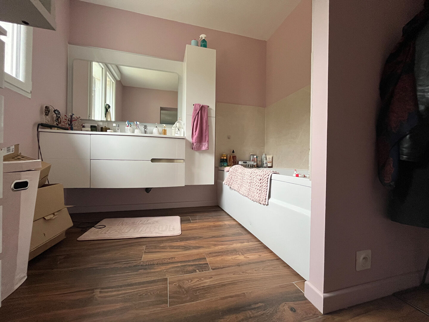 Pavillon des années 80 dont l'intérieur a été entièrement rénové et isolé en 2020. Il se compose au rez de chaussée: entrée, cuisine aménagée et équipée ouverte sur le salon-séjour pour environ 51 m², deux chambres dont une avec salle de bains et dressing attenant, WC, buanderie-cellier et garage attenant. A l'étage: palier distribuant deux chambres et salle d'eau avec WC. Terrasse, kiosque, le tout sur environ 2000m² clos.