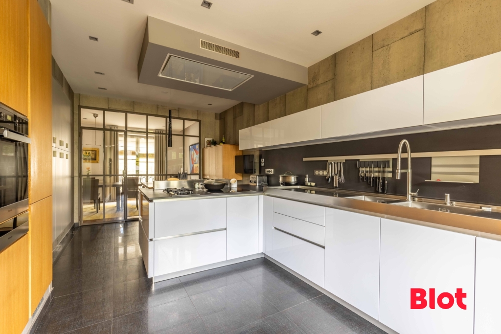 La maison a été pensée avec le confort et l'élégance en ligne de mire : elle s'organise sur trois niveaux desservis par un ascenseur privatif : Au rez-de-chaussée, la première entrée accueille deux bureaux indépendants de la partie habitation pouvant abriter une éventuelle activité libérale.