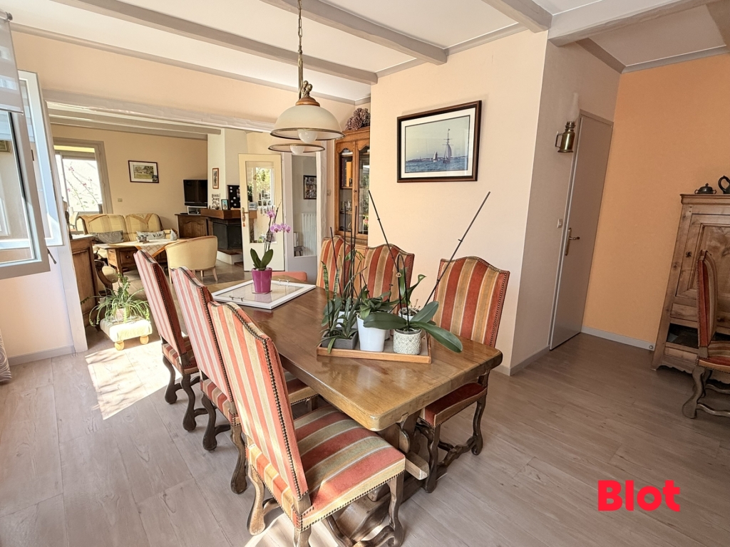 Dans un environnement résidentiel , à quelques minutes des plages et des commodités, maison traditionnelle implantée sur un terrain clos et arboré de plus de 670 m², elle offre une belle qualité de vie. L'entrée s'ouvre sur une chaleureuse pièce de vie prolongée par une véranda baignée de lumière, idéale pour profiter de chaque saison. La cuisine indépendante, avec son arrière-cuisine, permet un agencement fonctionnel et confortable. Une chambre en rez-de-chaussée, avec salle d'eau attenante, complète ce niveau.