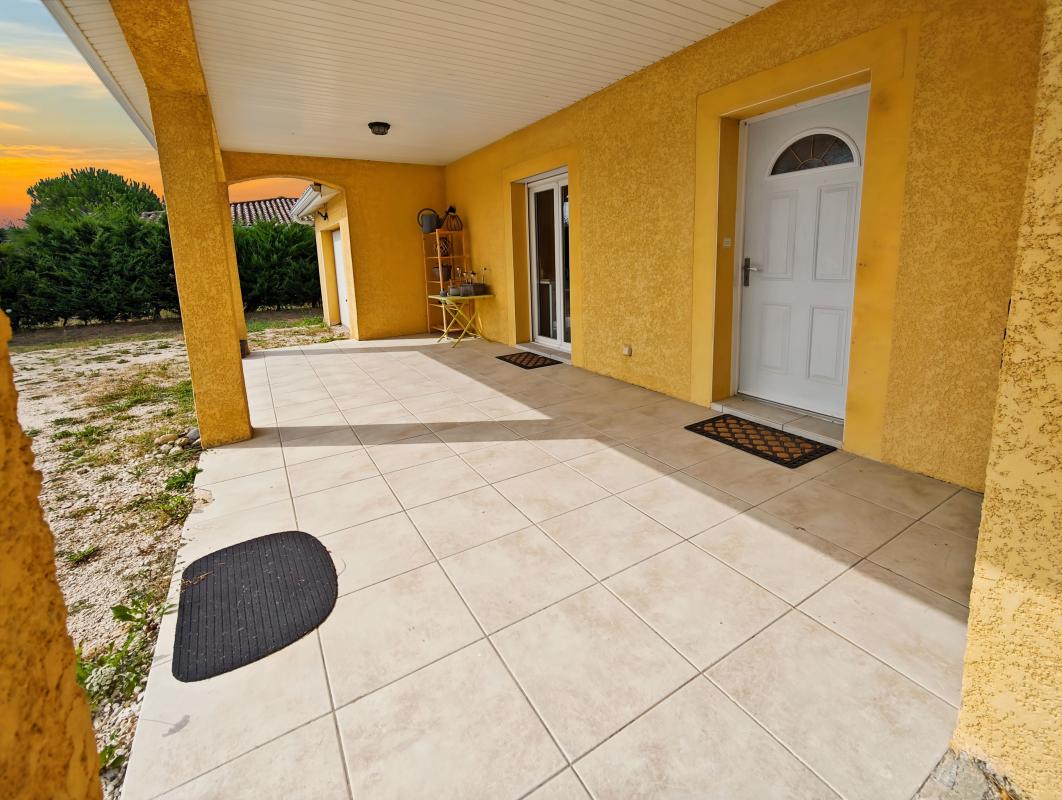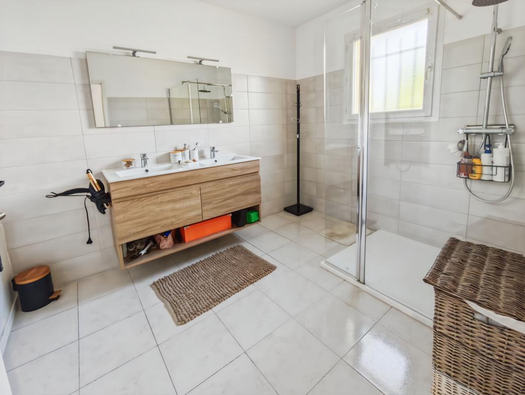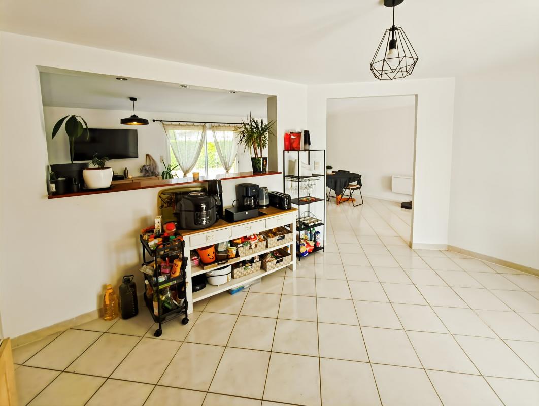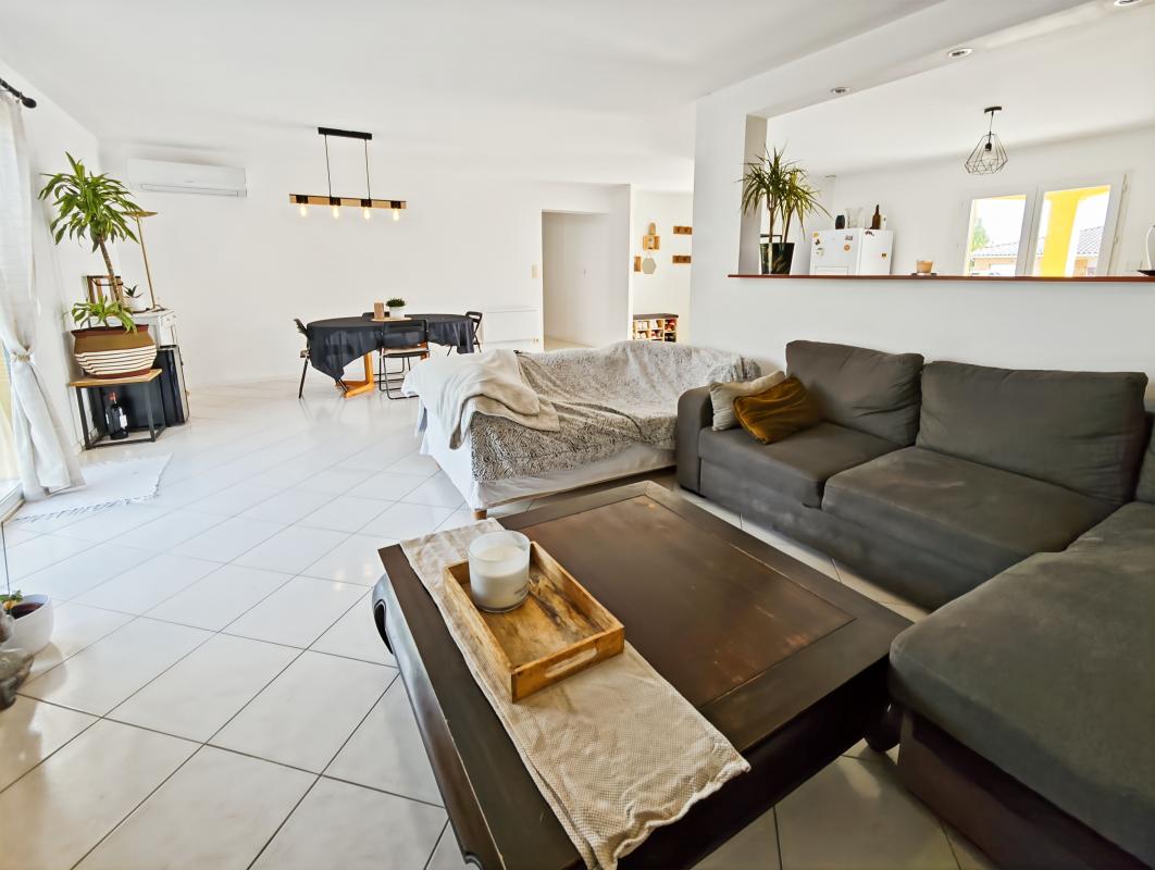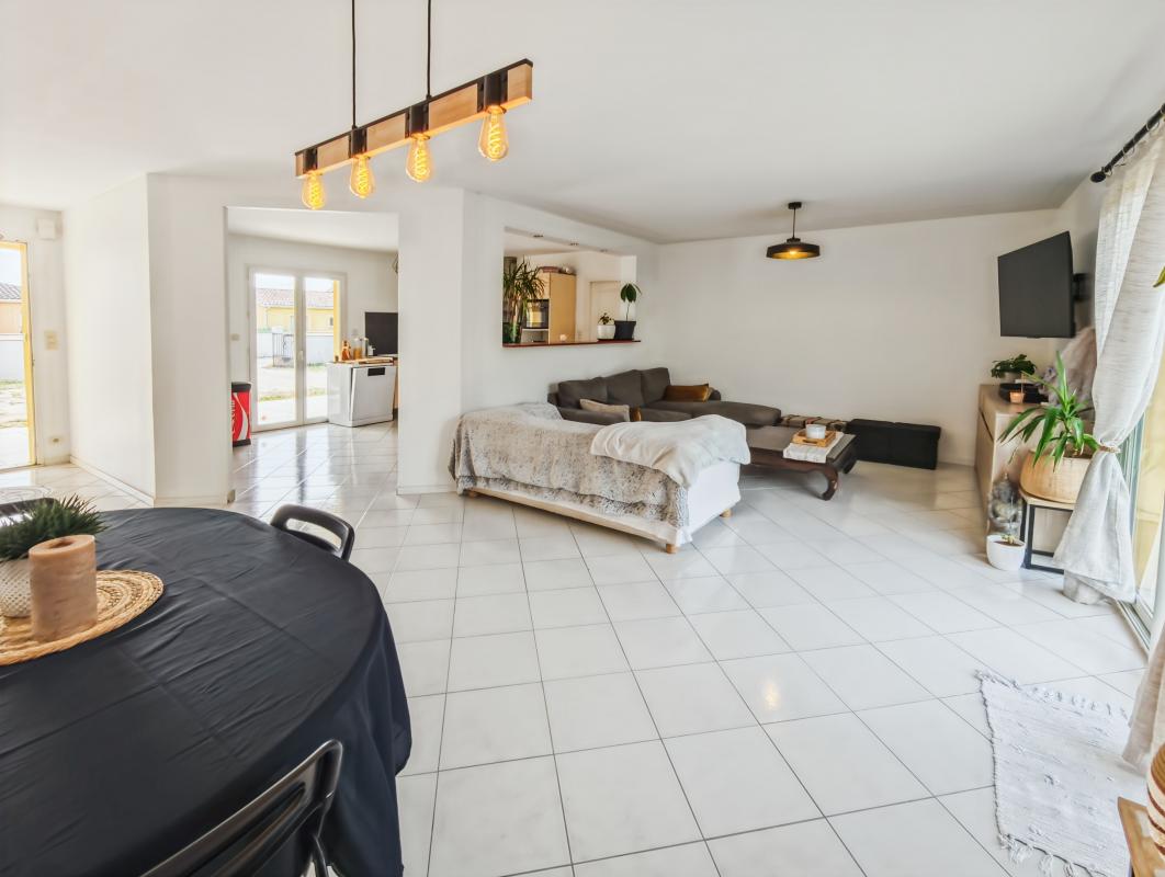 Lumineuse villa de plain pied comprenant un bel espace de jour de plus de 45 m², 3 belles chambres, grand garage de 20 m² et jardin clos.
