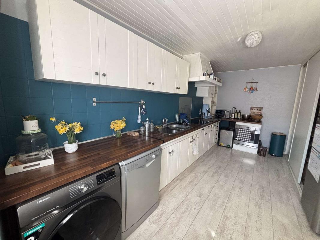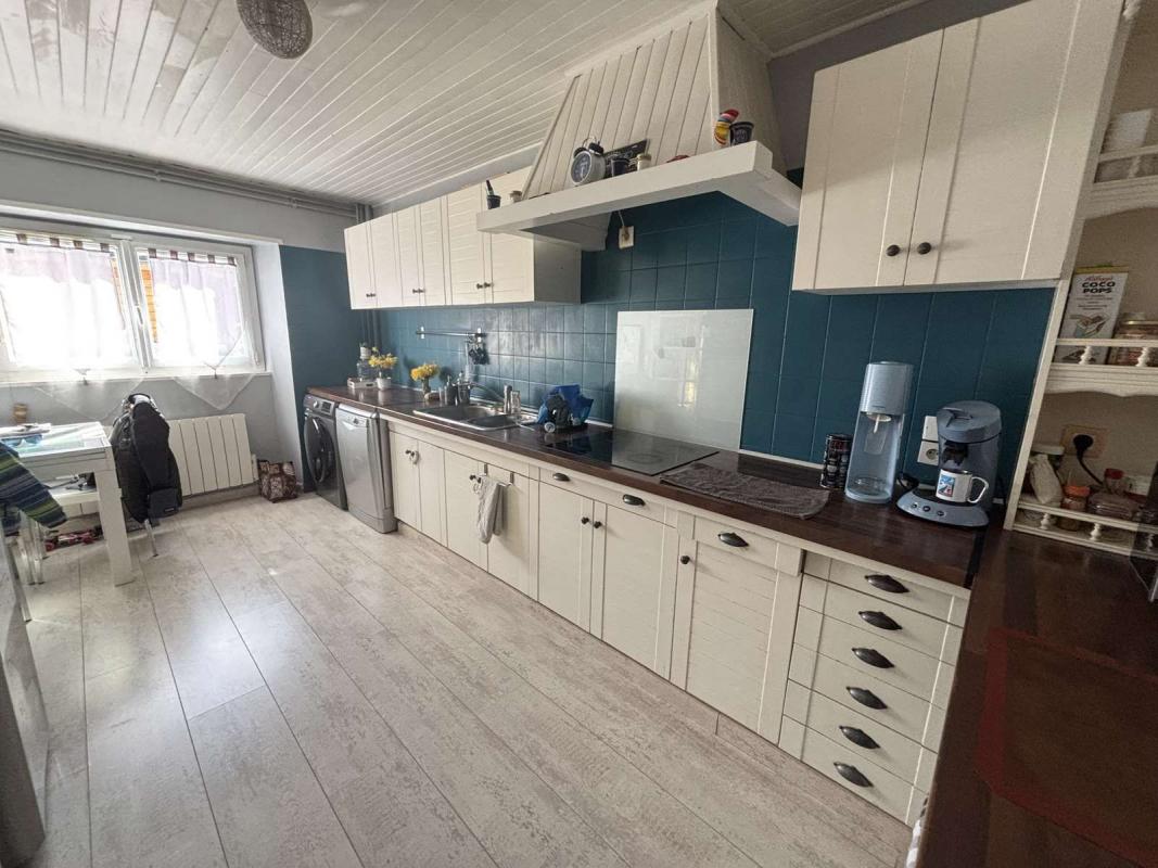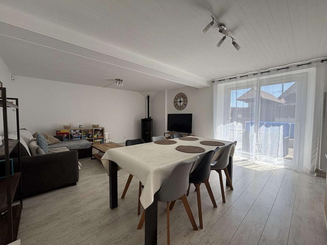 - Rez-de-chaussée : Entrée avec placard, séjour avec poêle à granulés neuf d'environ 30 m², cuisine indépendante aménagée et équipée, WC indépendant.