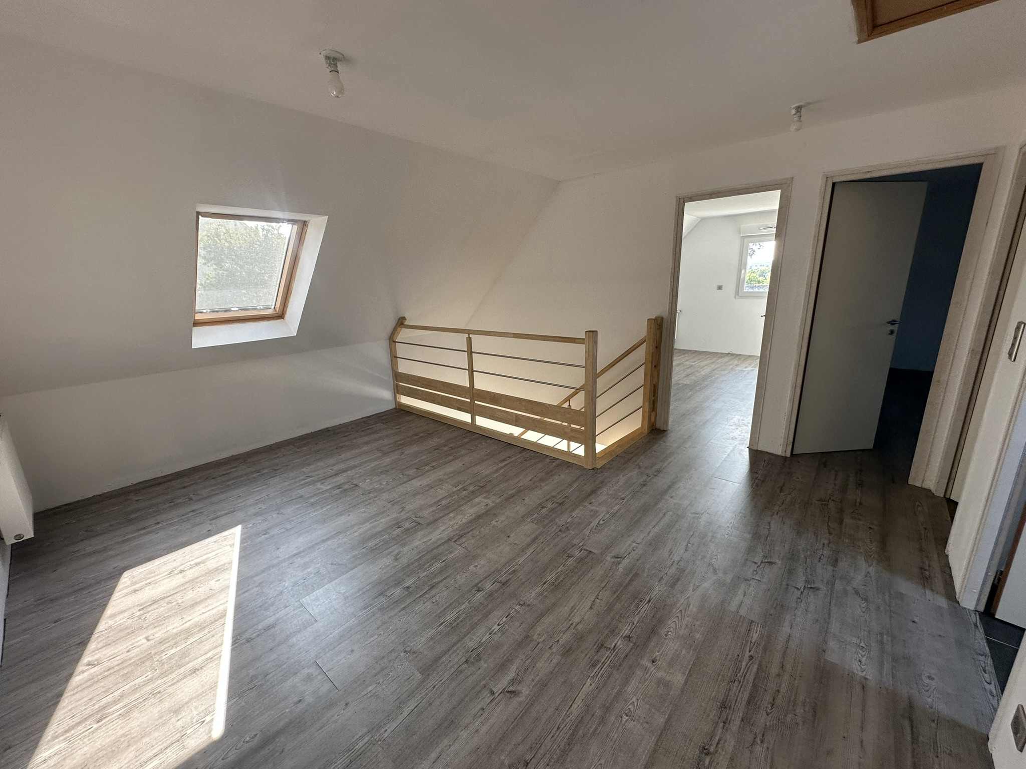 À l'étage : Une belle mezzanine distribue deux spacieuses chambres, une salle de bain, un second WC ainsi qu'une pièce supplémentaire, parfaite pour créer une quatrième chambre, un bureau ou un espace détente selon vos besoins.