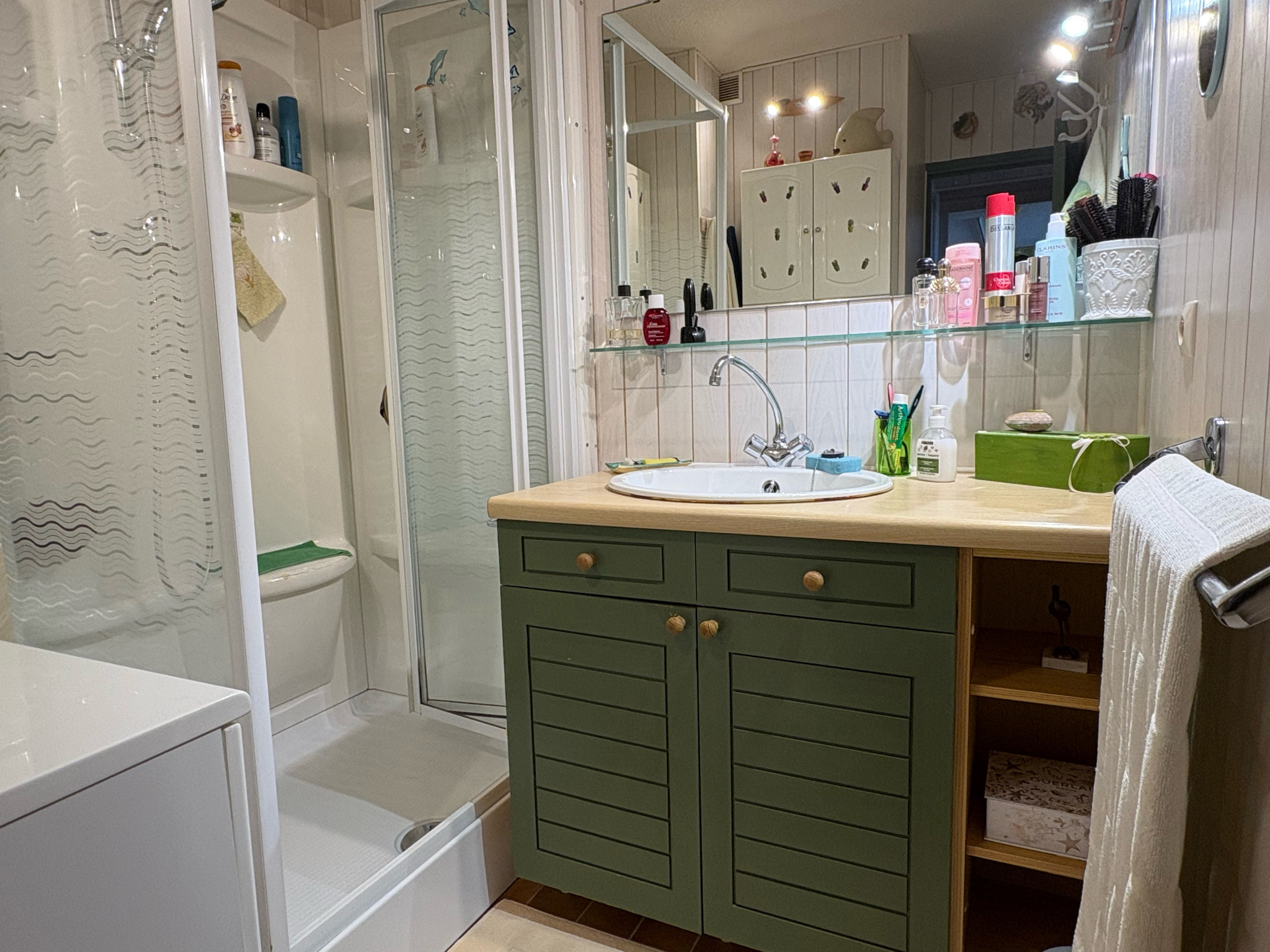 Un séjour lumineux, une cuisine fonctionnelle, une chambre avec placard intégré, d'une salle d'eau et des toilettes indépendantes.