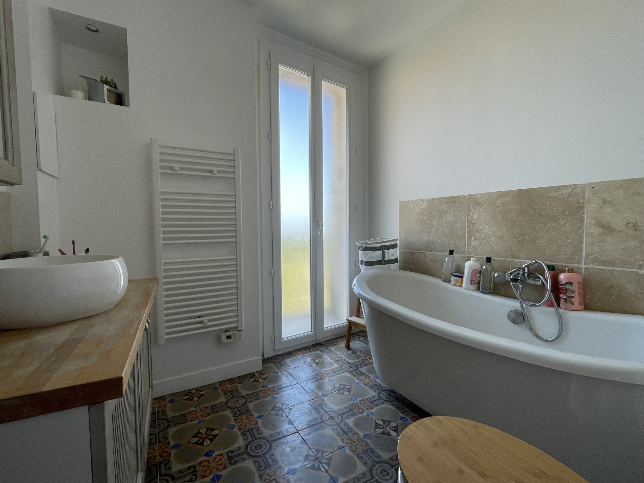 A l'étage deux chambres dont une suite parentale avec salle de bains, 1 WC avec lave-mains et lave-linge