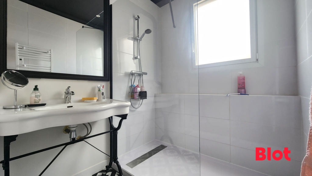 A l'étage, un espace nuit soigné et harmonieux se dévoile. Deux chambres lumineuses communiquent avec une salle d'eau moderne, tandis qu'une élégante suite parentale complète cet étage avec son dressing et sa salle d'eau.