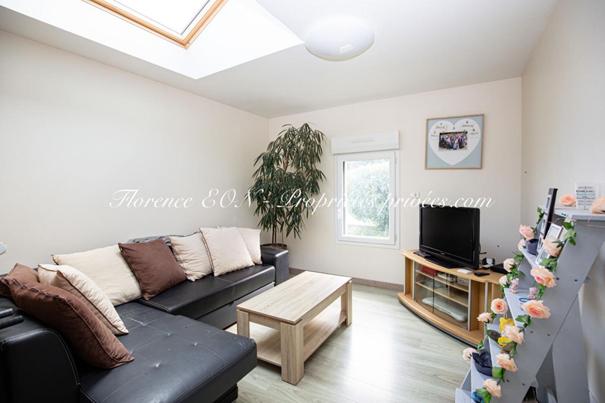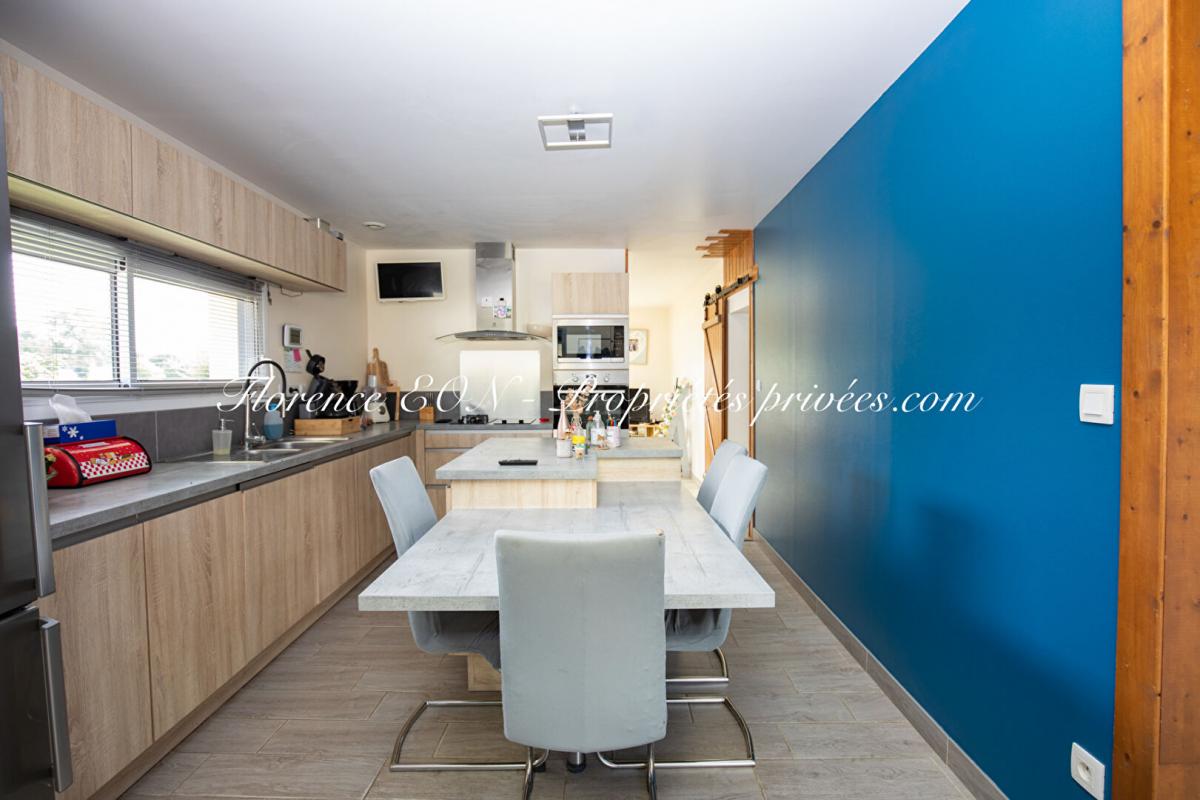 Ce bien se compose au rez de chaussée d'une grande salle à manger lumineuse avec accès à la terrasse et poele à pellets , une cuisine ouverte équipée et aménagée , un salon ( ou chambre supplémentaire) , une salle de bain , un bureau , une grande chambre avec dressing et un WC avec lave mains.