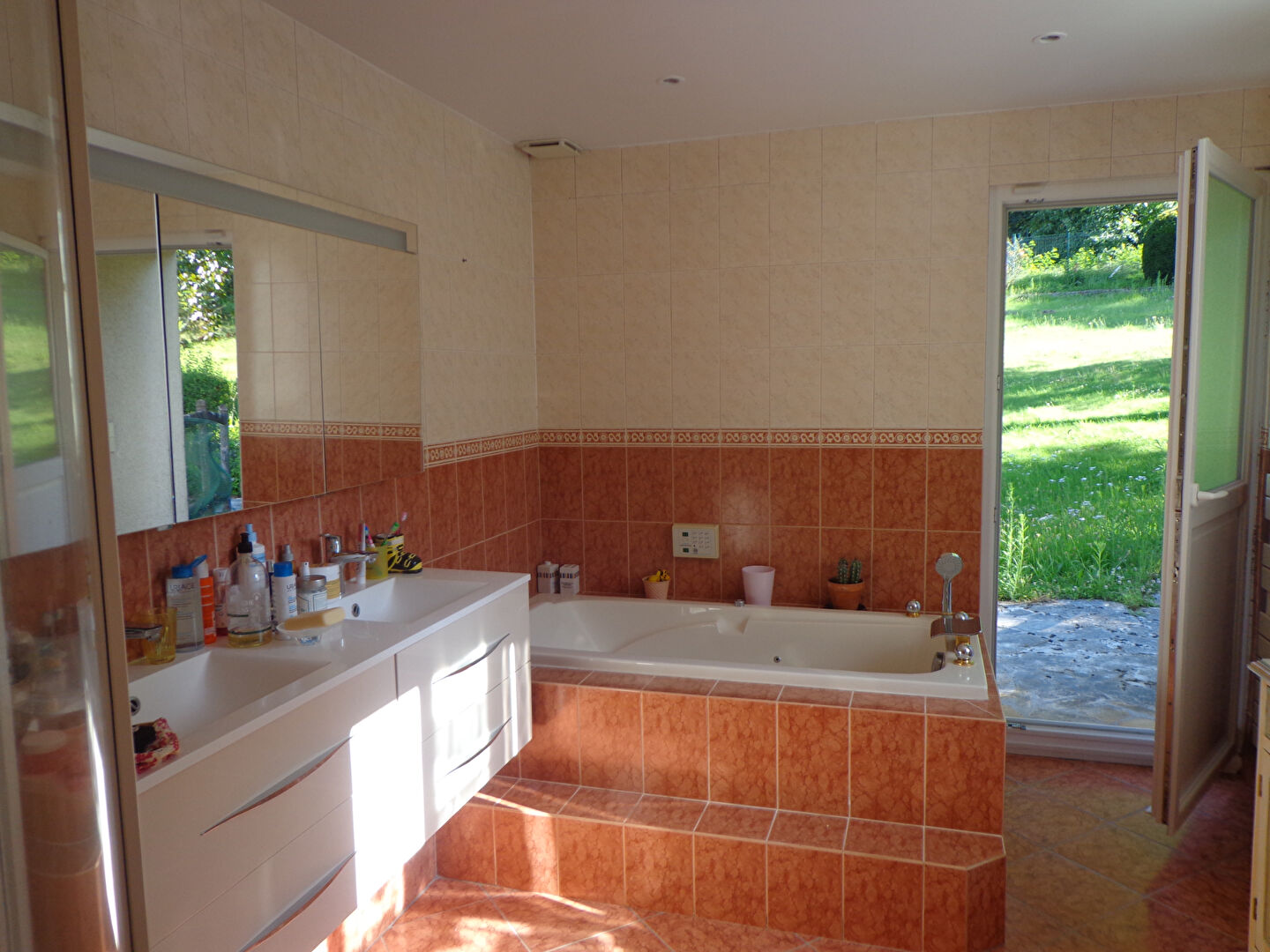 Etage : 4 belles chambres, un bureau, WC, SDE avec une baignoire vu sur le jardin.