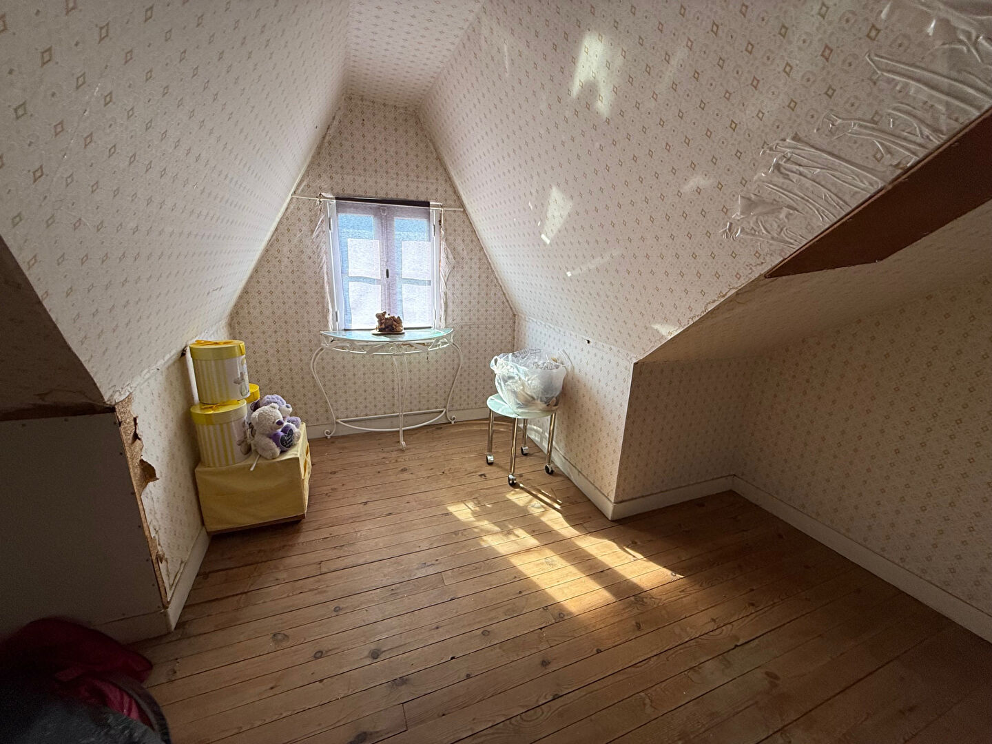 St-Pol-de-Léon, maison mitoyenne en bon état général, quartier calme : entrée, salon, séjour, cuisine aménagée ouverte, salle d'eau, WC, une grande chambre avec dressing. A l'étage beau potentiel avec grand grenier sur plancher bois. Sous-sol total avec buanderie, lingerie et garage. Jardin clos, parking. Maison soignée.