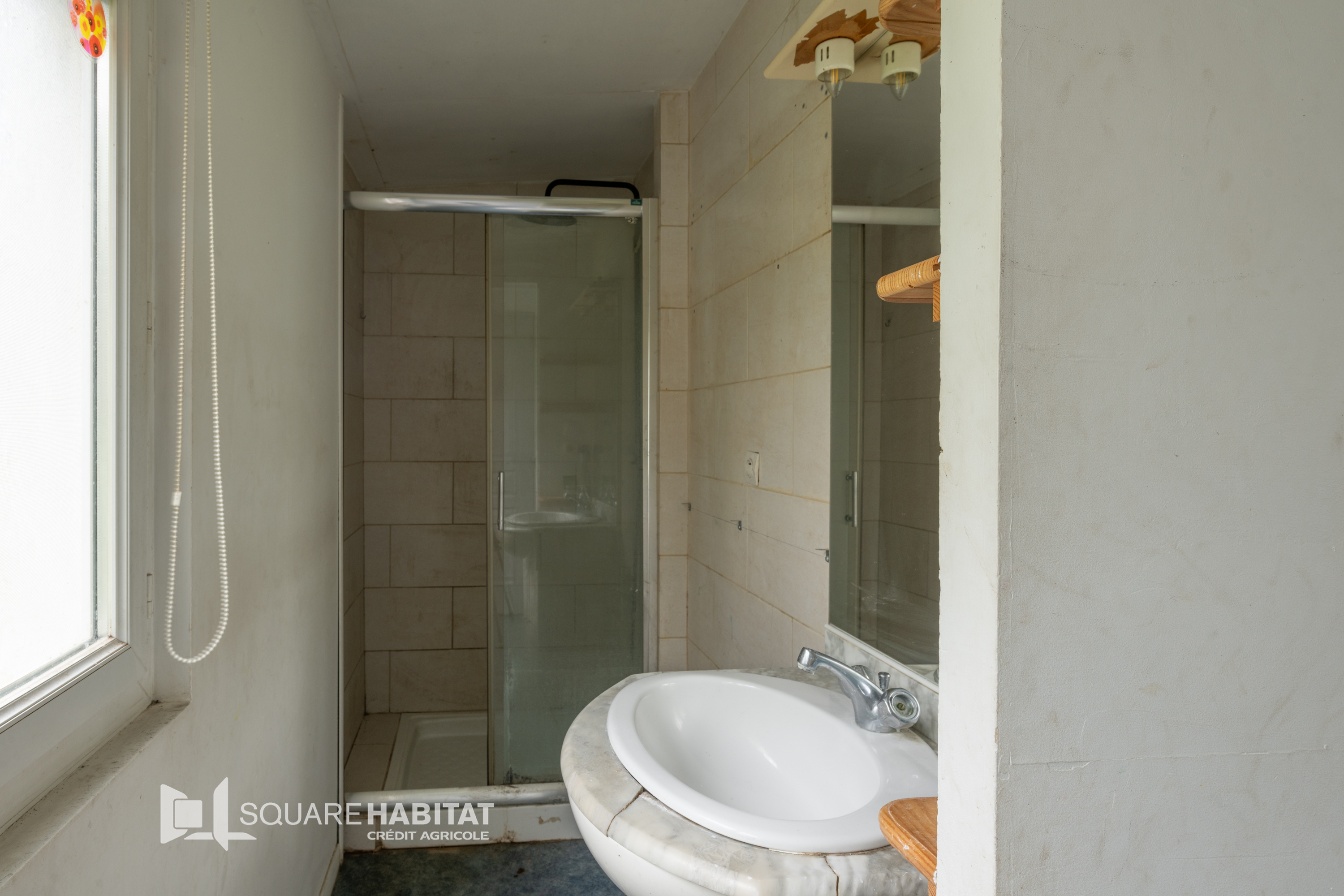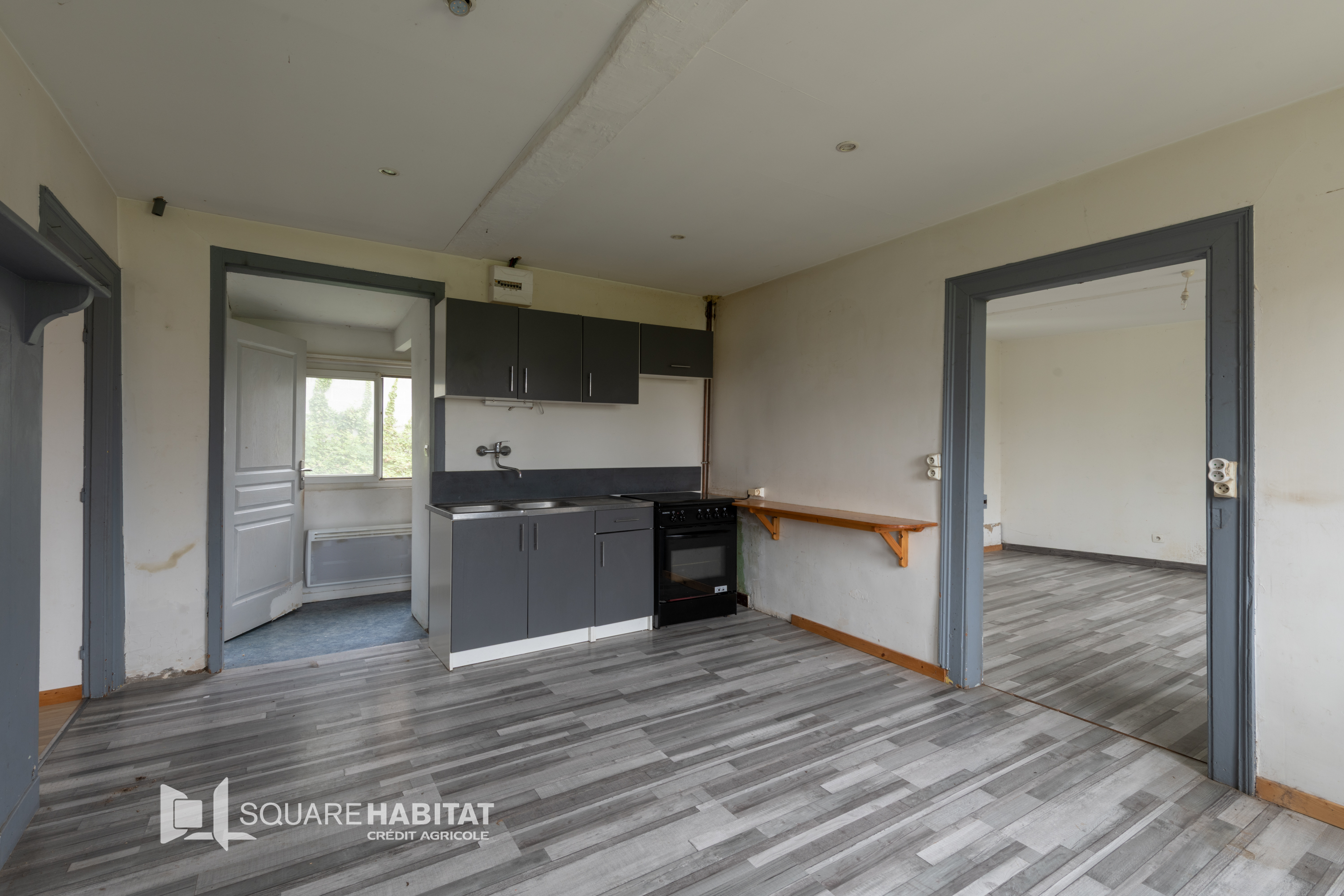 Entrée sur cuisine, séjour, chambre, salle de douche, wc