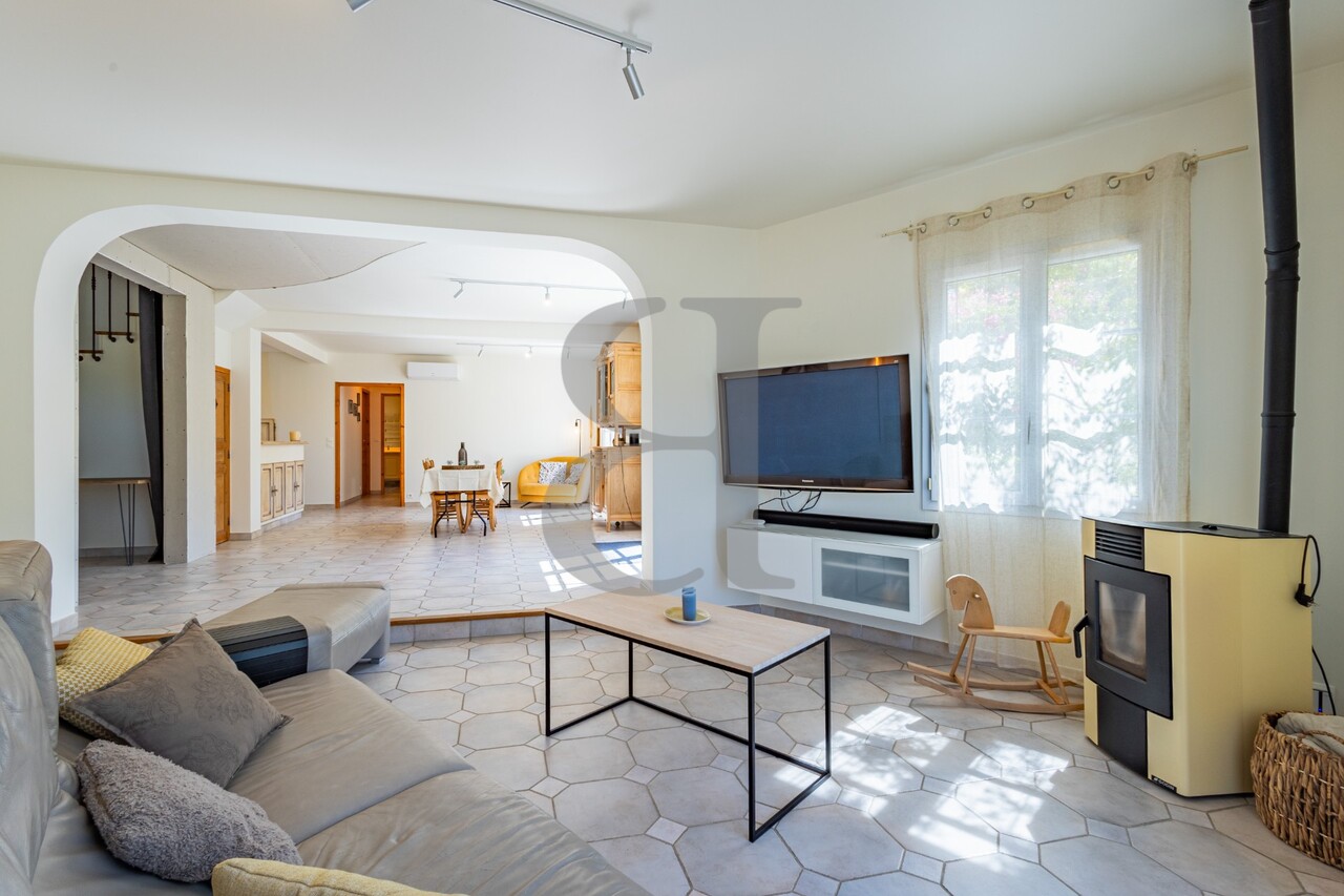 Coup de cœur pour cette villa située à quelques kilomètres de Vaison-la-Romaine. Cette propriété en très bon état d'entretien se compose d'une partie principale avec une grand séjour cuisine très lumineux donnant sur la terrasse et le jardin, 3 chambres ainsi que d'un logement indépendant avec 1 chambre.