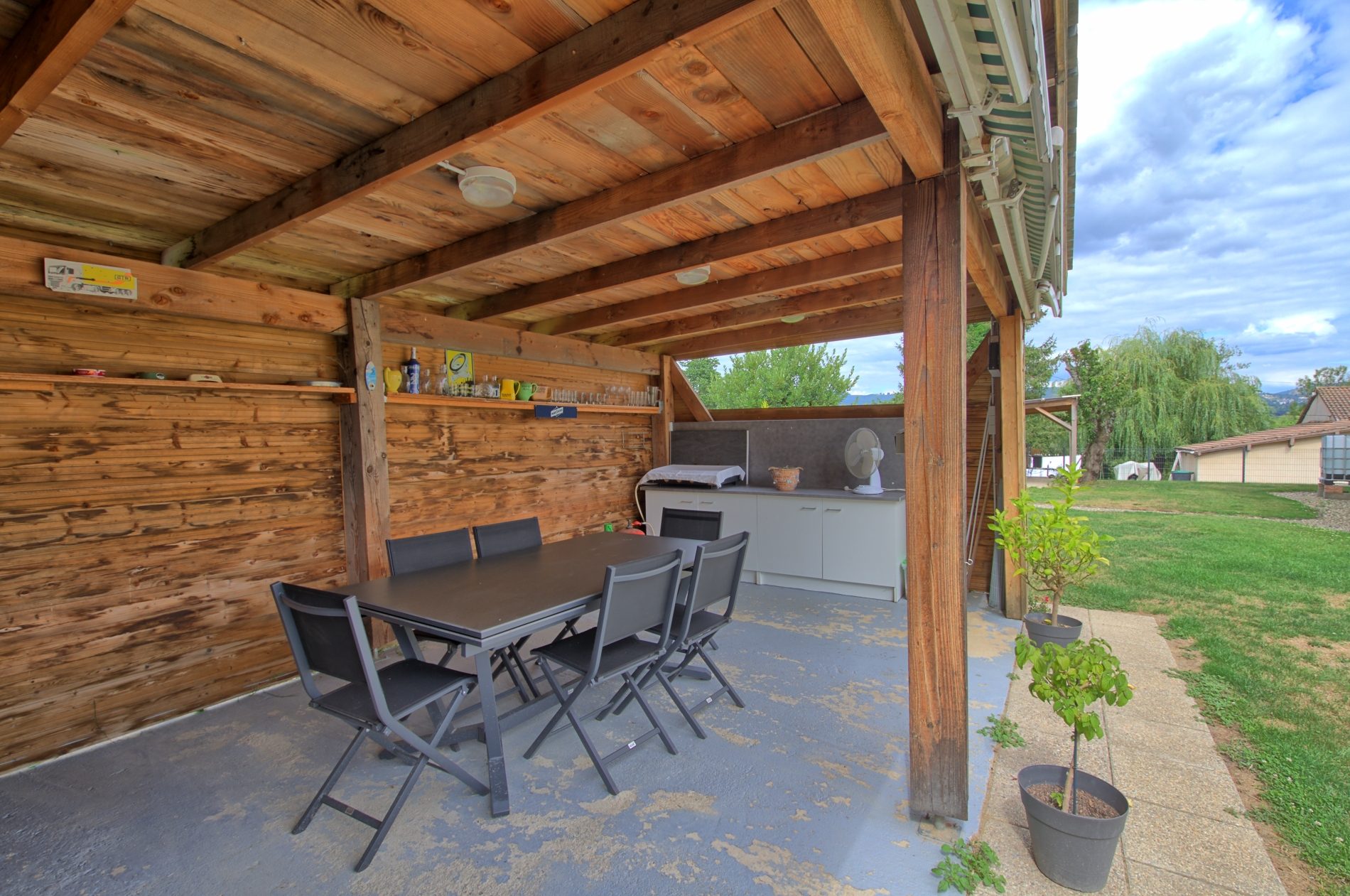 Une terrasse couverte idéale pour les repas en extérieur